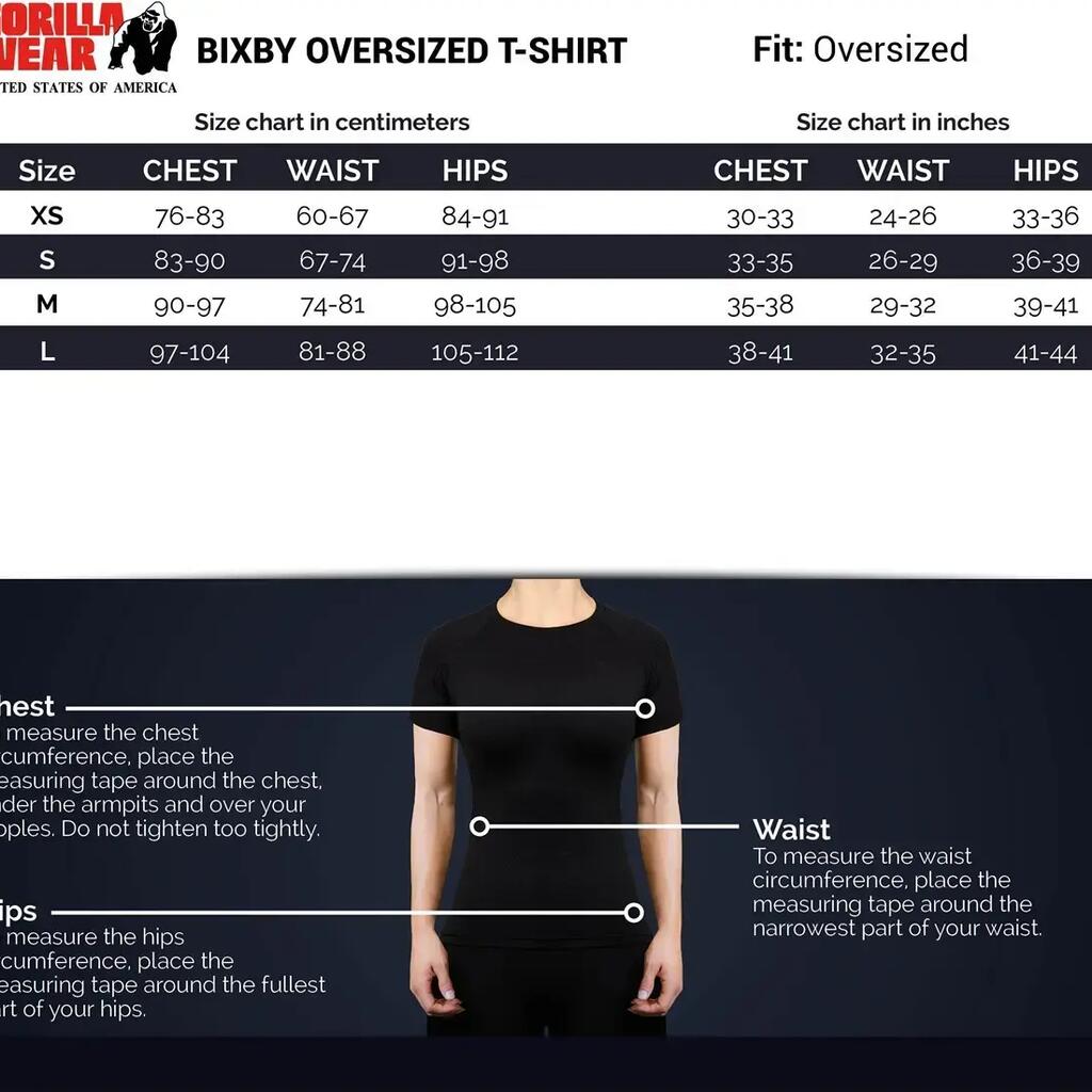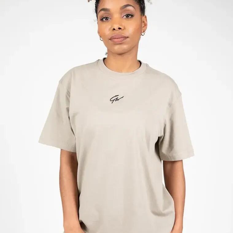 The Gorilla Wear Bixby oversized T-shirt for women is comfortable and stylish. With embroidered logo and 100% cotton, it's perfect for training.