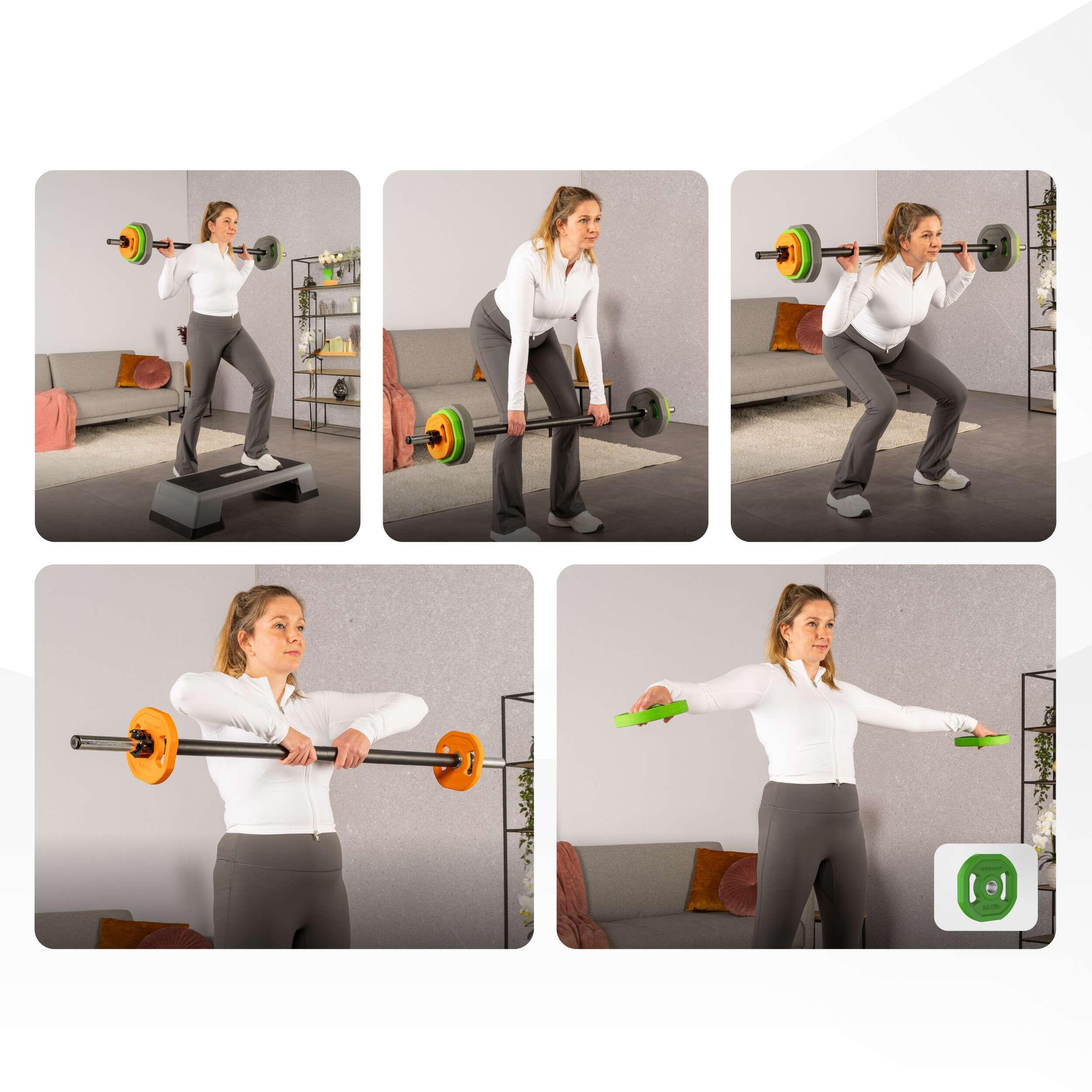 The Tunturi Aerobic Pump Set is designed for a wide range of exercises. Whether you are working on your strength, condition or stamina, this set offers the perfect support. Use the barbell for squats, dead lifts and presses, or train with the discs separately as a variation on dumbbells. The different weights (1.25 kg, 2.5 kg and 5 kg) make the set suitable for every training level.