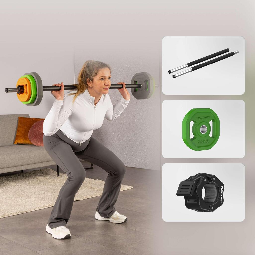 **Get the most out of your home workout with the Tunturi Aerobic Pump Set (20 kg). This versatile barbell set is perfect for body pump, strength training and fitness exercises. The high-quality materials, ease of use and versatility make this set a must-have for any home trainer or group fitness fan. Discover the convenience of training with this complete barbell set!**