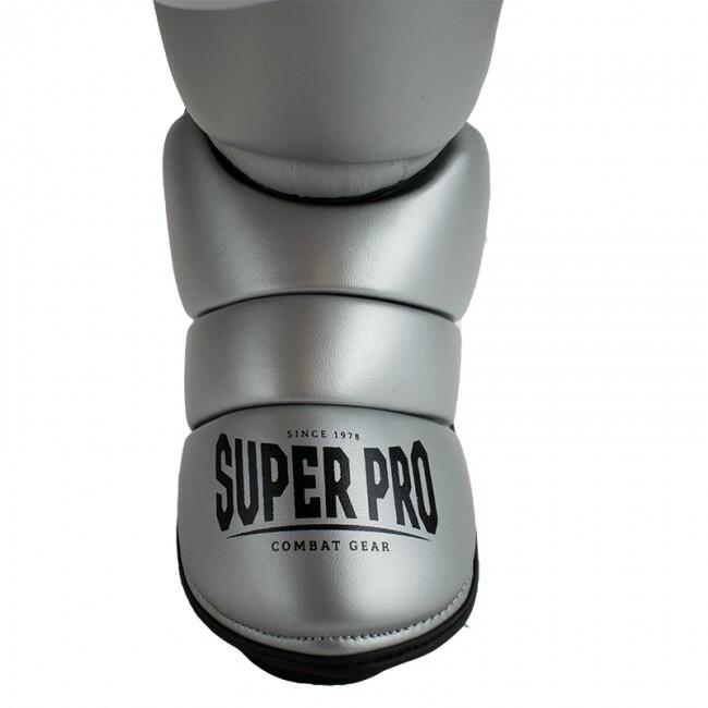 The Super Pro Combat Gear Rebel Shin Guards are very sturdy. This is partly due to the pre-shaped padding. The padding provides optimal protection and high wearing comfort. To ensure the guards stay securely around your shins, they feature Velcro fasteners and an elastic band at the foot.