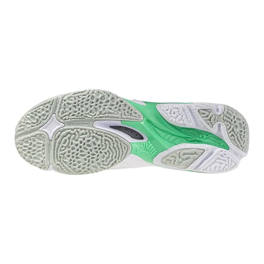 Play at the top of your game with this comfortable shoe that has features specially tailored for volleyball. Enjoy soft cushioning and high energy return thanks to MIZUNO ENERZY NEXT and the SOCKLINER at the forefoot, as well as the midsole MIZUNO ENERZY. You'll jump even faster and higher with the support of the new MIZUNO WAVE and the rounded heel structure. All these features come with a remarkably light weight thanks to the monofilament mesh. ①MIZUNO ENERZY NXT/MIZUNO ENERZY SOCKLINER The MIZUNO ENERZY NXT and MIZUNO ENERZY SOCKLINER at the forefoot provide soft cushioning and high energy return that you will appreciate. ②MIZUNO WAVE This shoe features the new WAVE structure specially developed to offer maximum support during jumps. The PLATE extends on the outside of the forefoot to provide maximum support for stride stability and excellent energy return during jumps. ③Dyna-Eyelet Wrap The eyelet structure with large cutouts offers a fit that feels like it's wrapping around the whole foot. ④ Weight minimization The monofilament mesh is used to minimize weight. The transparent mesh gives a light look and better breathability. ⑤ Rounded heel structure Promotes jumping movements from the heel and improves stride stability.