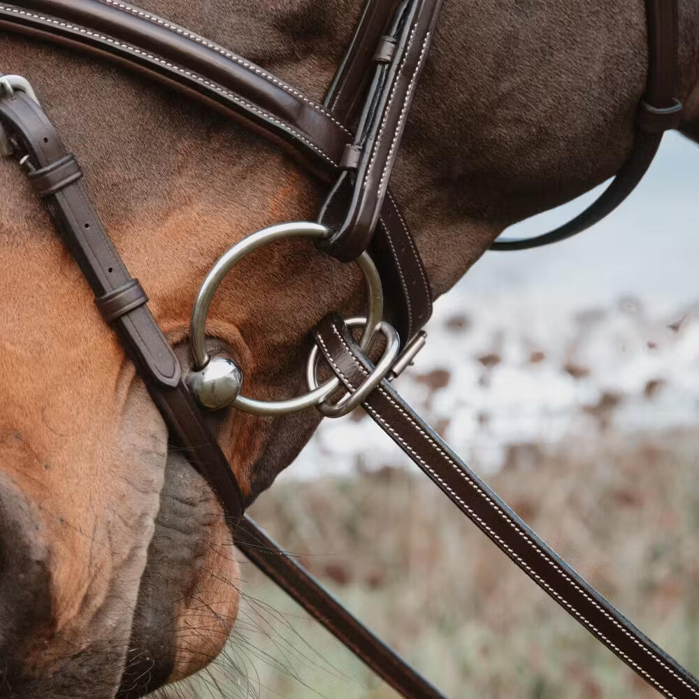 Rubber reins for horse with 7 leather stops, ring closure, without collar Dy'on