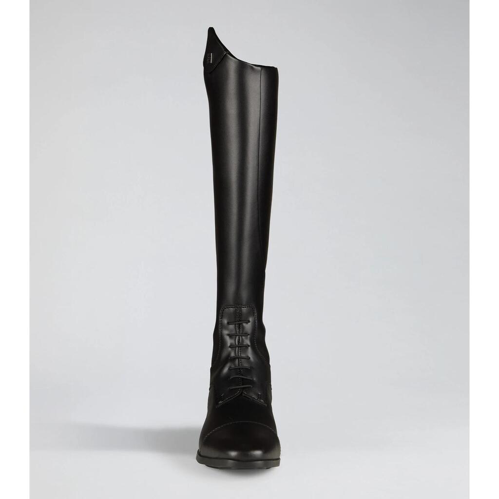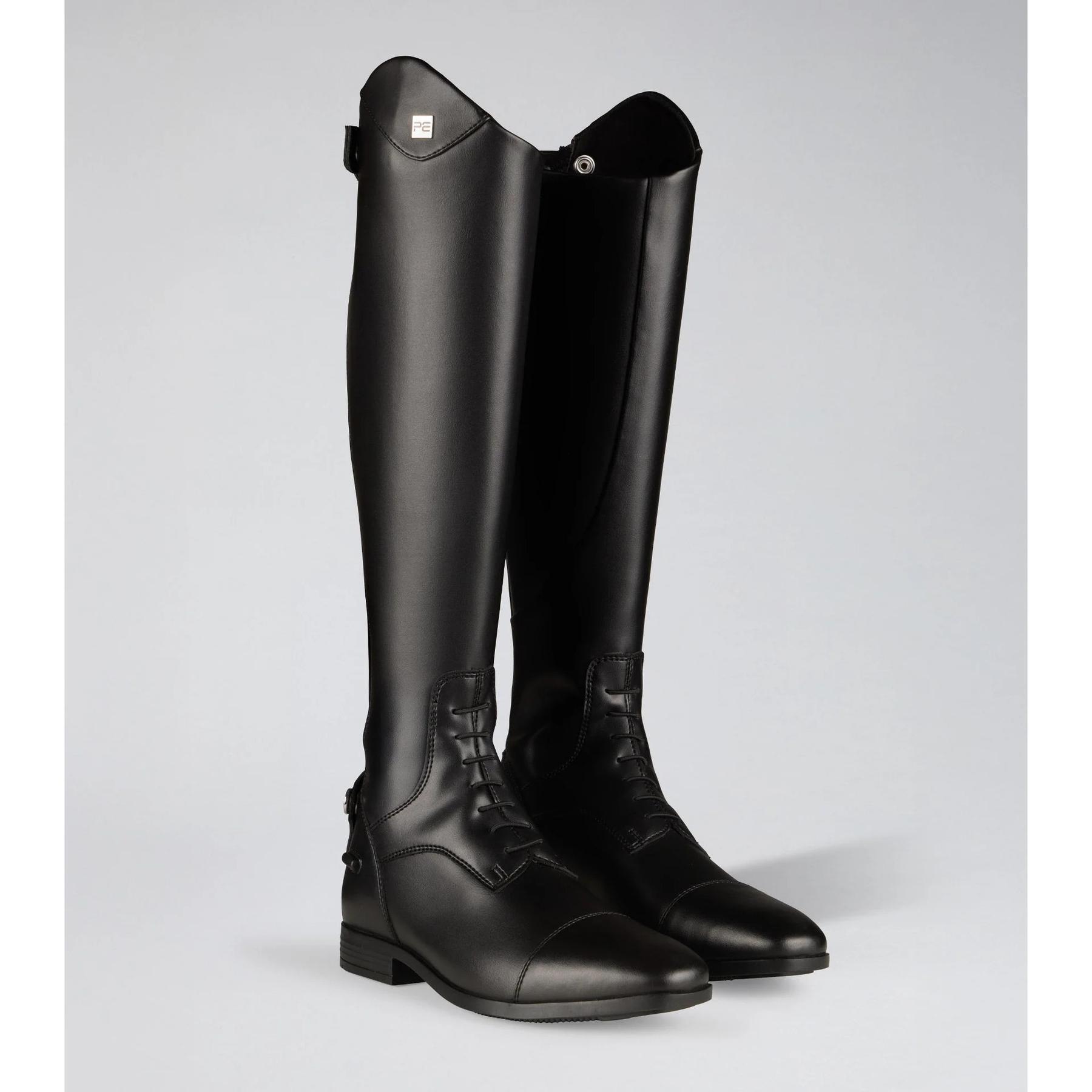 Perfect for dressage, show jumping, and daily training, the Altura boots feature a contoured and close-fitting design that enhances your riding experience. A full-length back zipper with a snap-button and discreet elastic panels ensure a comfortable and flexible fit that moves with you. The lace detailing at the front adds a touch of traditional equestrian elegance, while the sleek black finish and subtle branding complete a professional look.
