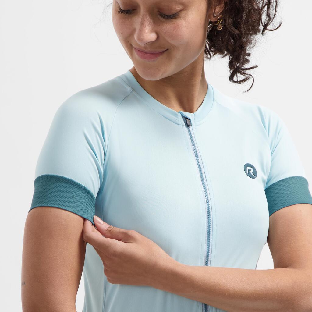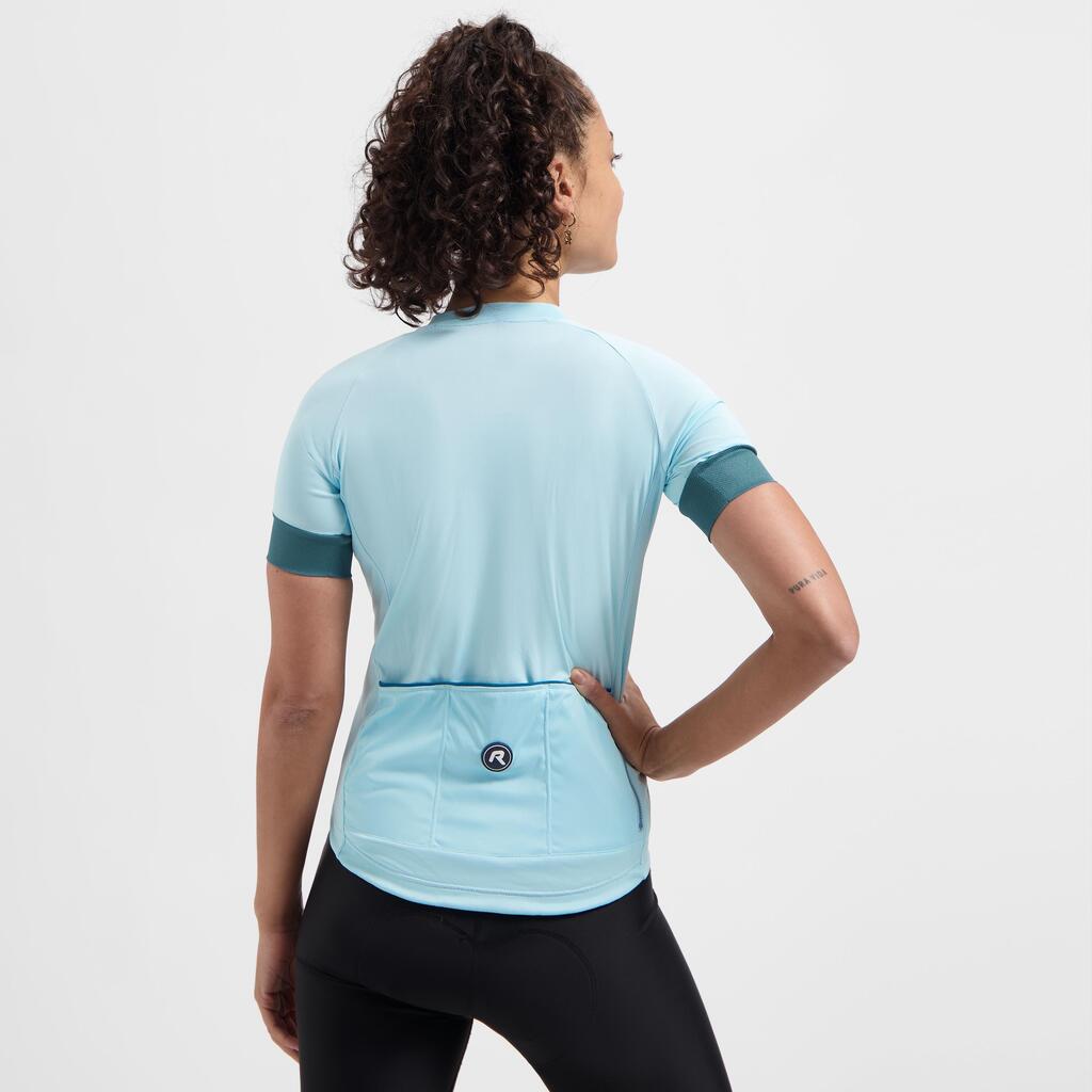 Women's lightweight and breathable cycling jersey with full-length zip and pockets, ideal for riding in warm weather.
