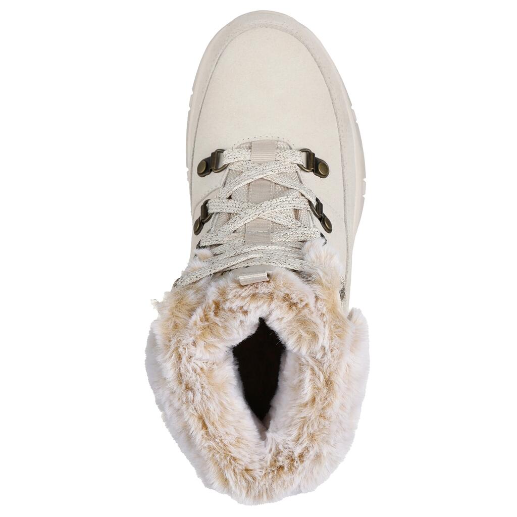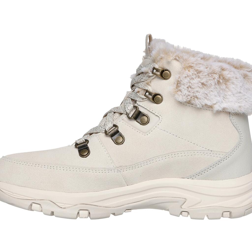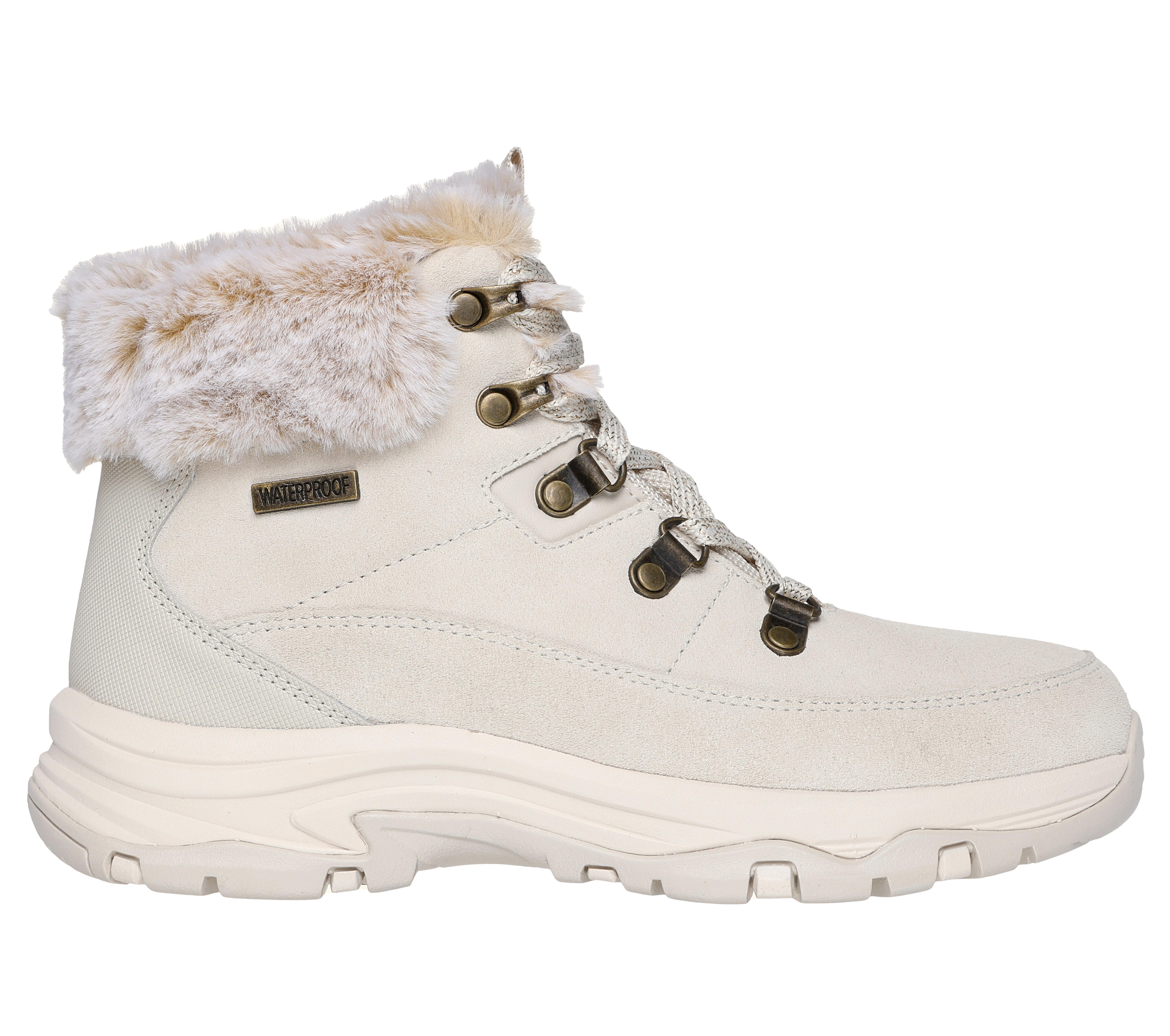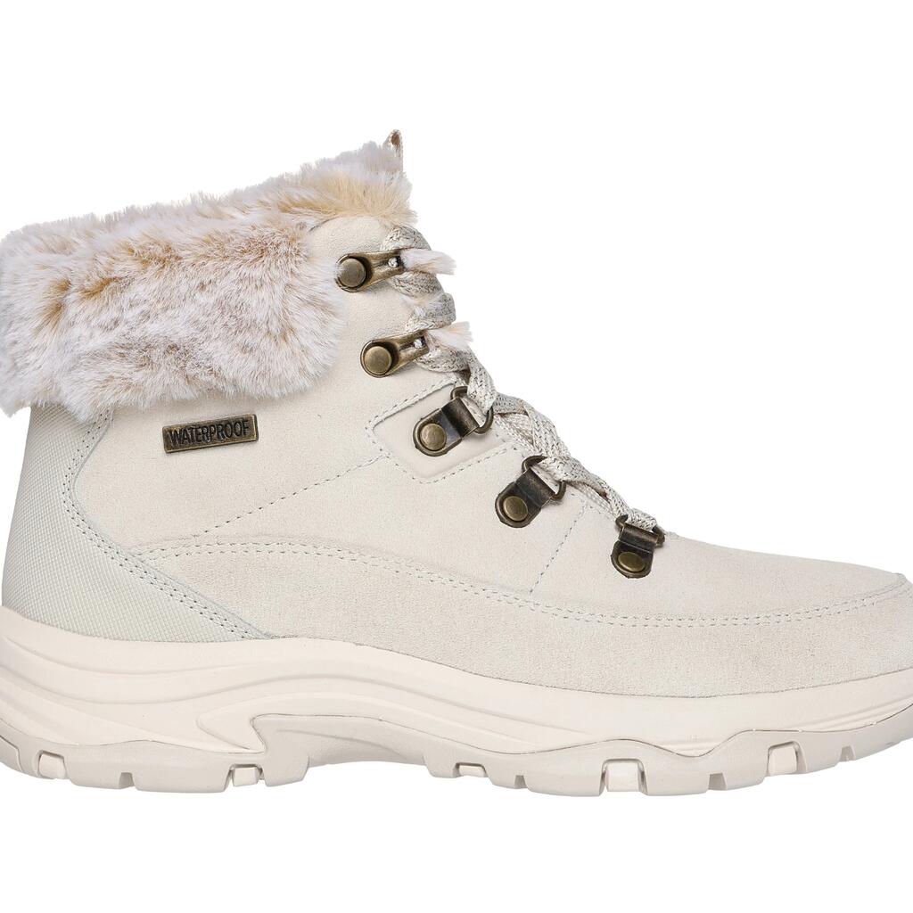 The SKECHERS TREGO SNOW WORRIES boots: Memory Foam insole and a waterproof design. Faux-fur lining keeps feet warm, and the slip-resistant sole provides secure traction.
