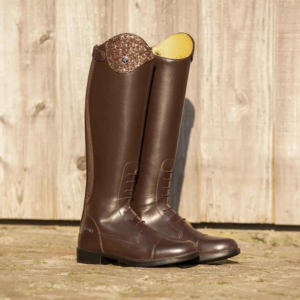 Add these boots to your style! The top features a hook-and-loop fastening so that the designs can be attached to the riding boot. The riding boots Romy come with a sparkling design. Other models are available separately. They come with a zipper and elastic insert at the back, and an elastic lace at the front.