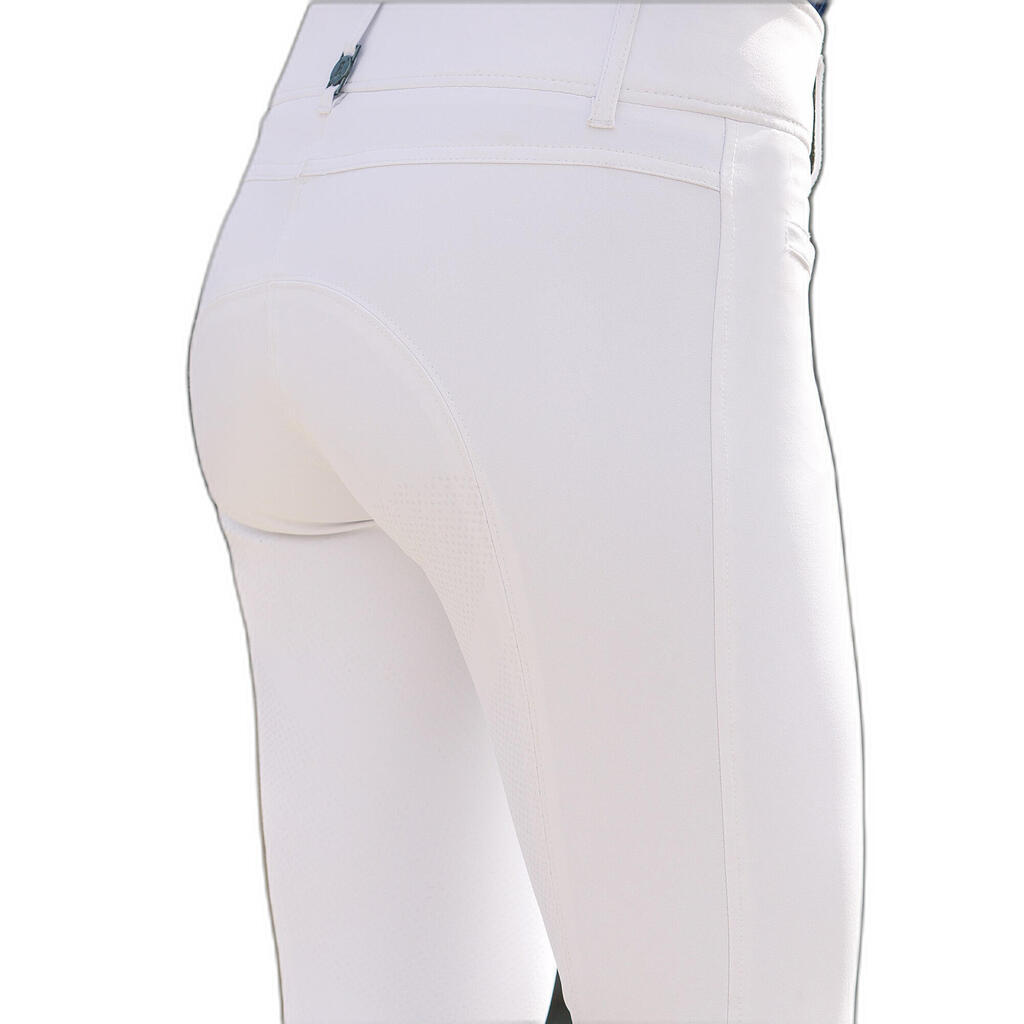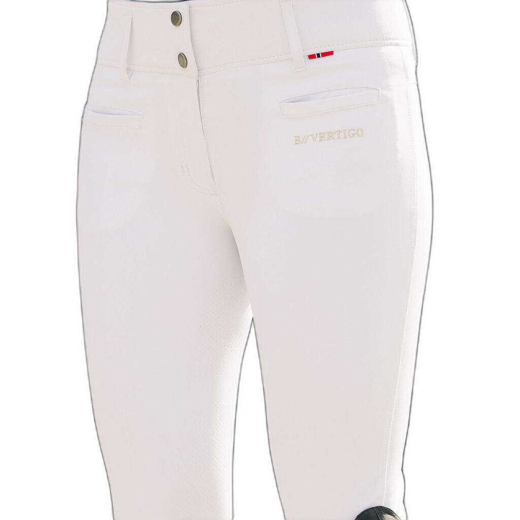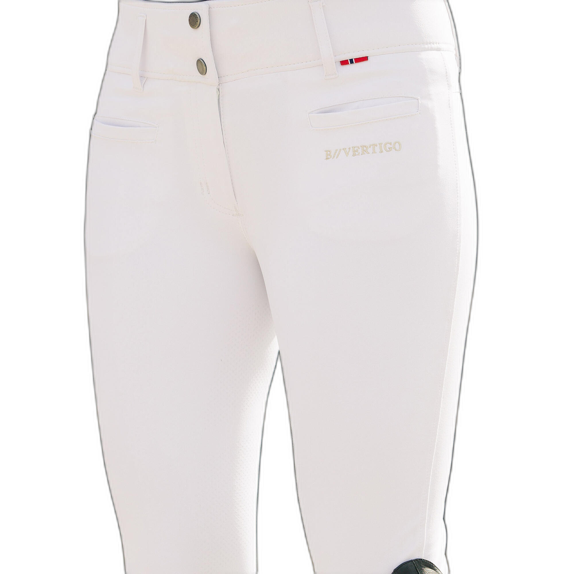 A high waist that almost feels like a lumbar belt.You may feel like these pants have a very high waist, but once you wear them during a riding session, you will be convinced. The high waist improves your position in the saddle, keeping your body a little firmer. Whether you're in class or in competition, you'll look great in these riding breeches. The beautiful finish B Vertigo, very elegant, will take care of your look. The refreshing fabric, which quickly wicks away perspiration, stays dry and light on your skin. Try this riding pant with its excellent performance.Features:Quality silicone-impregnated skin bottomBreathable, fast-wicking fabricMaterial has UV protection (UPF 50+)Durable, functional, 4-way stretch materialGood fit around the anklesHigh waist for comfortClassic fitOptimal comfort70m inseam heightTechnical description:Exterior: BV Opti-Pro 92% polyamide, 8% polyurethane.Washing instructions:Machine wash inside out at 30°C. Dry on hanger. Do not iron. Do not use fabric softener.Instructions for use:A riding pant that is suitable for dressage and riding lessons.