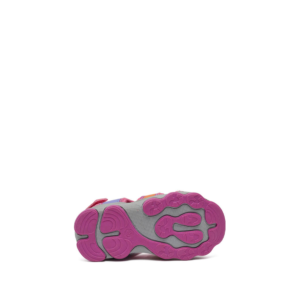 The ARLEQUIN children's sandal combines comfort and lightness. Its Velcro-type velcro lacing system allows for an easy and secure fit. Its thermoplast-rubber sole offers durability, flexibility and grip on the trails.