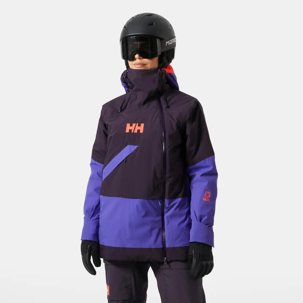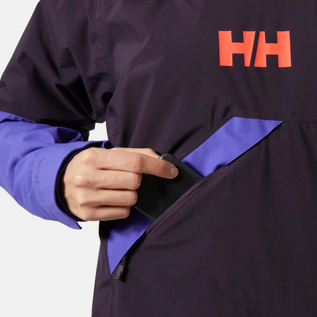 Dominate the slopes in style with the women's ski jacket Helly Hansen Powchaser Asym, featuring an asymmetrical design and unique neon details.