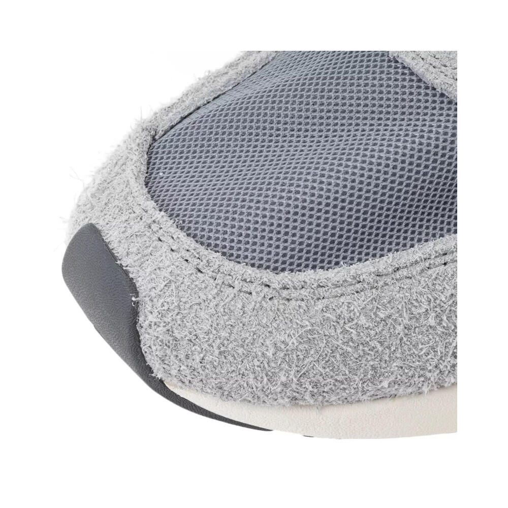 Made of suede, in gray color, 4cm thick sole, rubber sole and lace closure by New Balance, very comfortable for all types of walks.