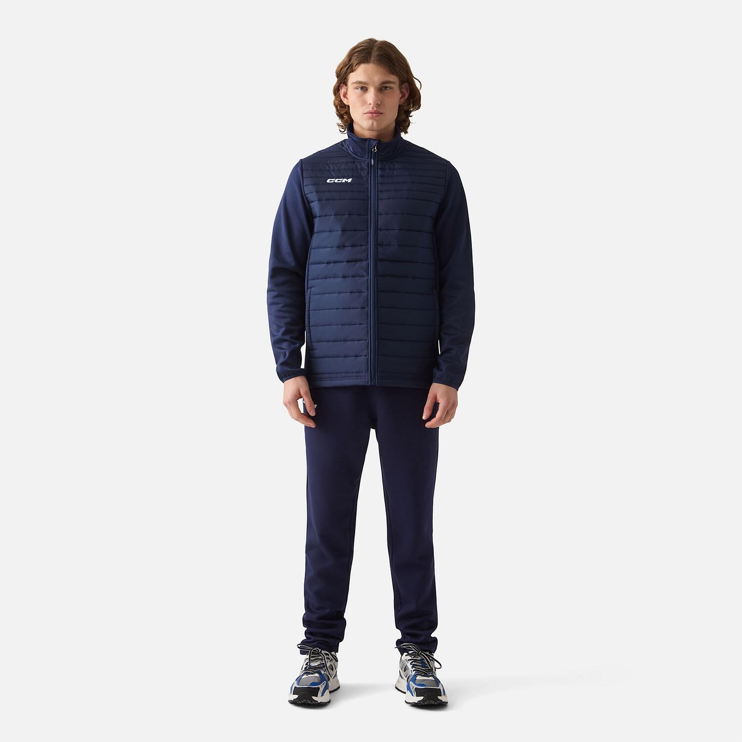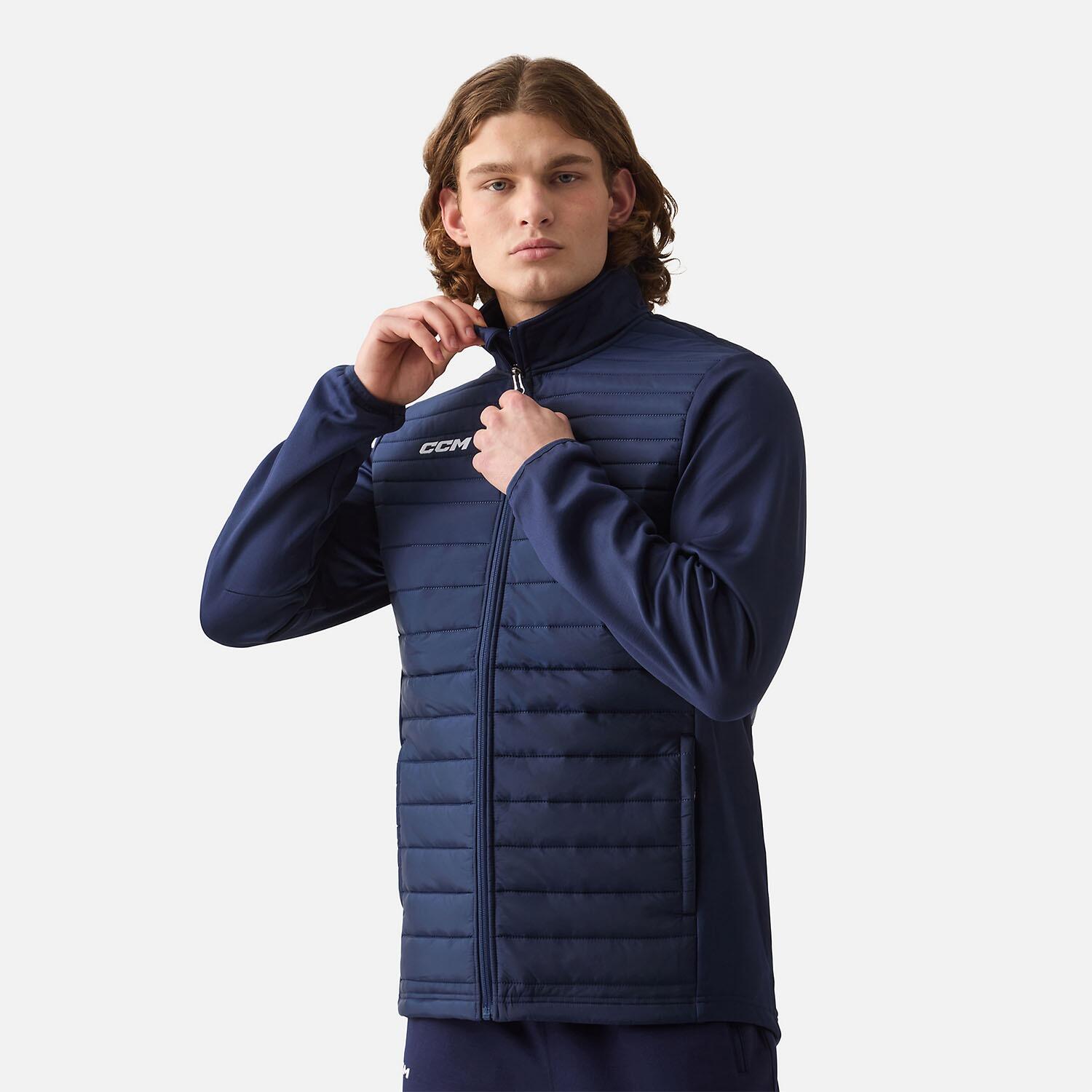 CCM Team Quilted Jacket: A sporty jacket made of recycled polyester with tech fleece sleeves. Comfortable and equipped with zip pockets.