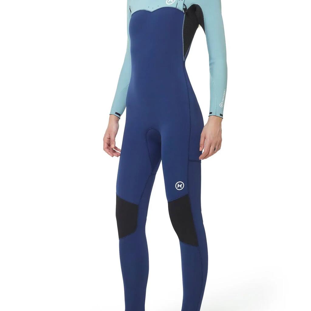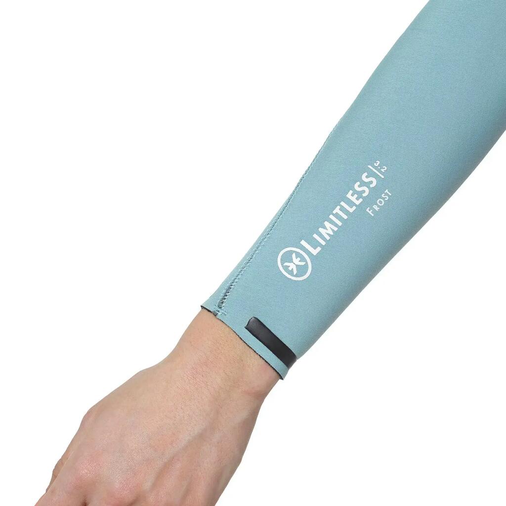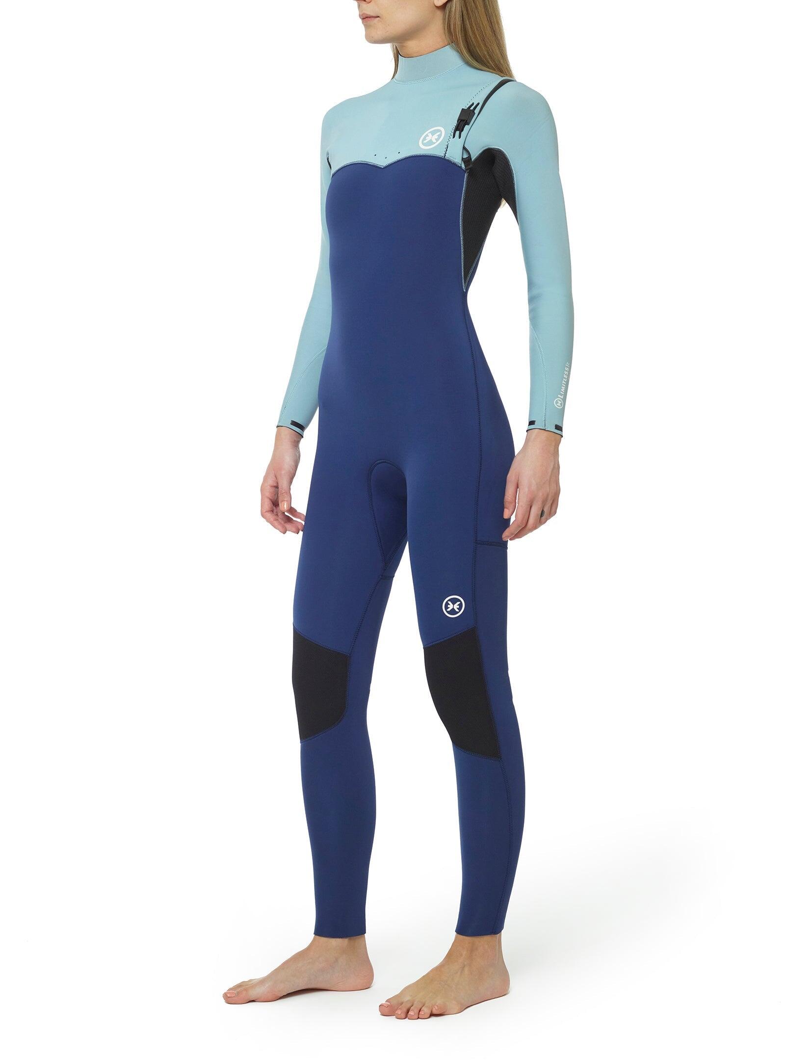 Wetsuit Limitless Frost 3/2 for women in multicolor, SS22 model, designed to deliver unlimited mobility and outstanding comfort in temperate water conditions. Made with Mineralprene PLUS neoprene developed from recycled oyster shells and limestone, it combines advanced performance with durability. The graphene inner lining provides exceptional strength, superior heat retention, and ultra-fast drying properties. The Zip Free entry system, together with the adjustable chest panel featuring a Nifco stopper and double elastic, ensures a precise fit without restricting movement. The ENERGY TECH panel under the arms delivers ultra-high flexibility, while rubber grip bars on the left shoulder help reduce water entry. A Glide Skin neck and seamless neoprene neck opening enhance comfort and sealing. The Deeply Graphene FastDry lining ensures quick drying across the torso and legs, while K-FLEX lining on the arms and lower legs traps heat effectively. Rubber rings on the cuffs minimize water ingress. Glued and blind-stitched (GBS) seams are internally sealed with Neo Tape 2.0 elastic tapes for added durability and flexibility. Recommended for water temperatures between 12–16ºC, this wetsuit is ideal for surfers seeking maximum flexibility, warmth, and comfort in temperate waters.