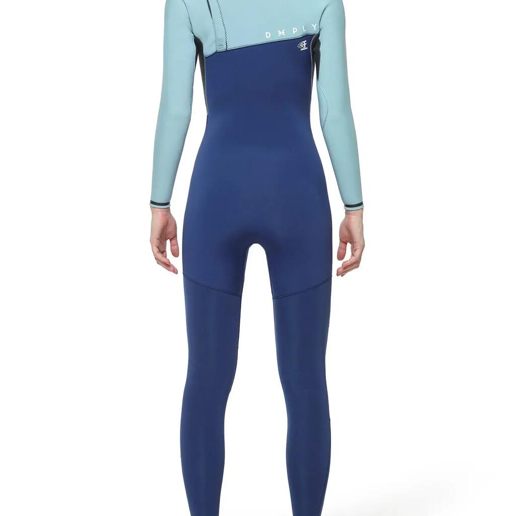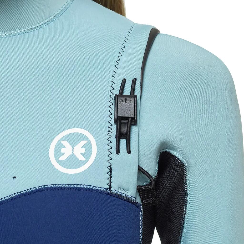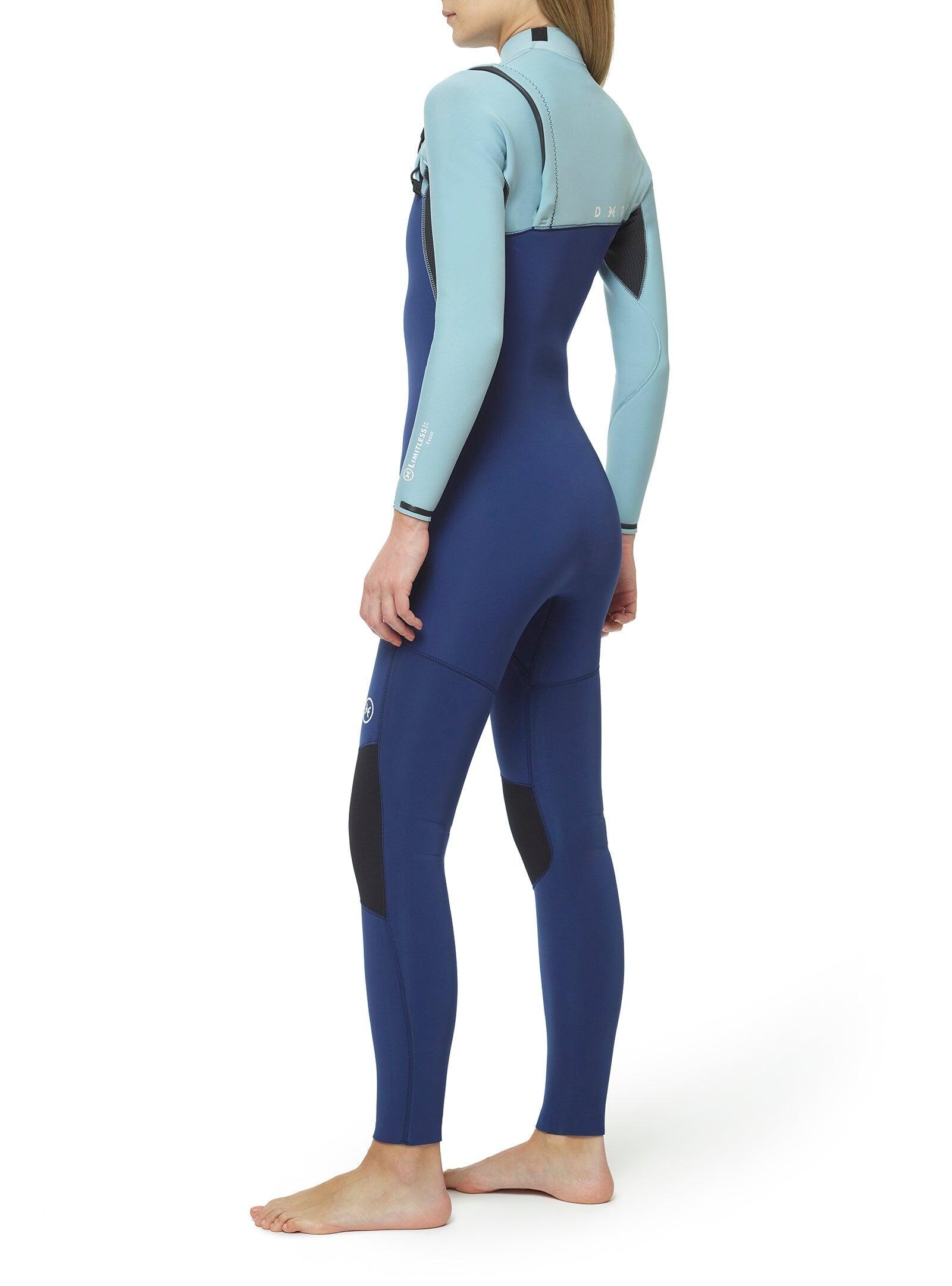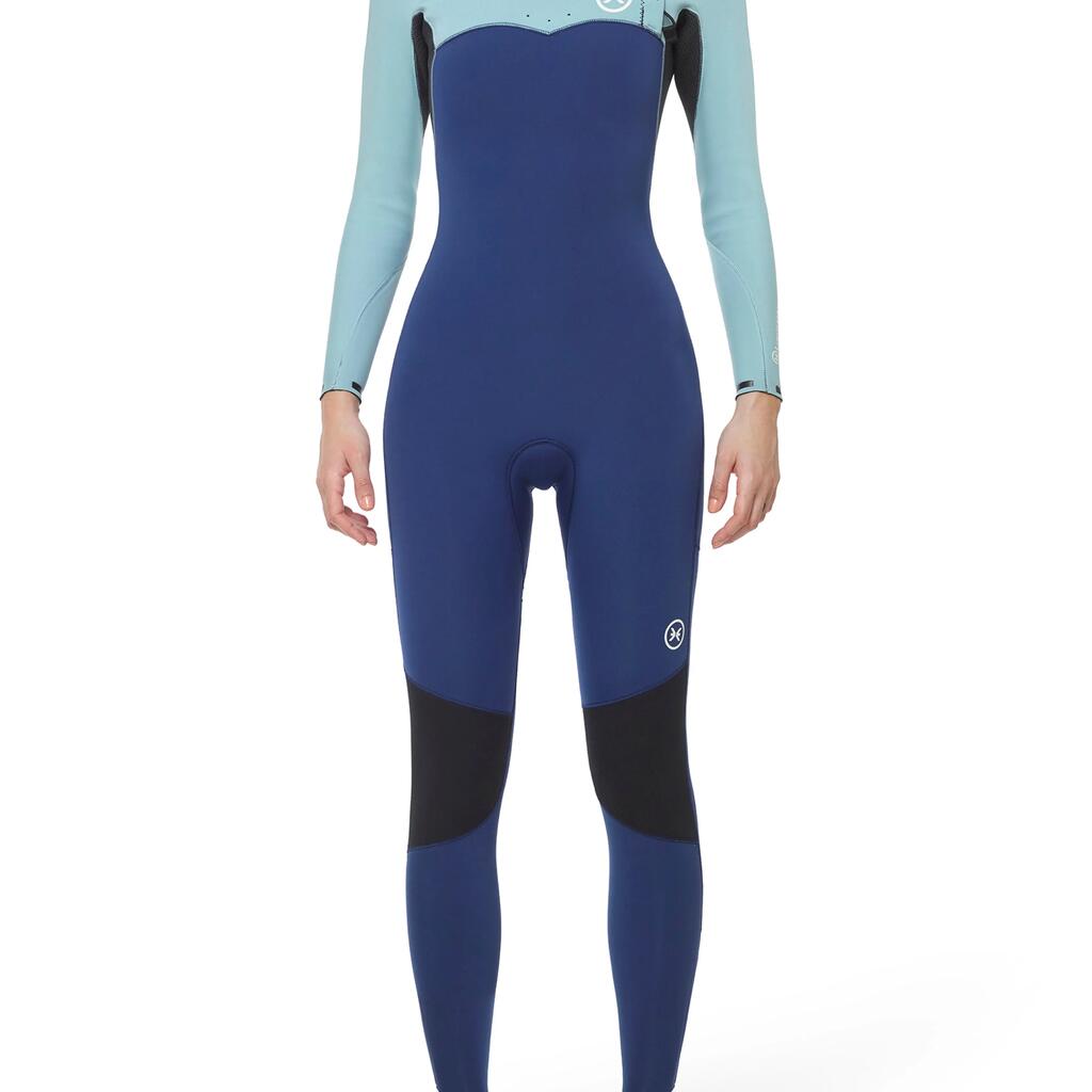 Wetsuit Limitless Frost 3/2 for women in multicolor, SS22 model, designed to deliver unlimited mobility and outstanding comfort in temperate water conditions. Made with Mineralprene PLUS neoprene developed from recycled oyster shells and limestone, it combines advanced performance with durability. The graphene inner lining provides exceptional strength, superior heat retention, and ultra-fast drying properties. The Zip Free entry system, together with the adjustable chest panel featuring a Nifco stopper and double elastic, ensures a precise fit without restricting movement. The ENERGY TECH panel under the arms delivers ultra-high flexibility, while rubber grip bars on the left shoulder help reduce water entry. A Glide Skin neck and seamless neoprene neck opening enhance comfort and sealing. The Deeply Graphene FastDry lining ensures quick drying across the torso and legs, while K-FLEX lining on the arms and lower legs traps heat effectively. Rubber rings on the cuffs minimize water ingress. Glued and blind-stitched (GBS) seams are internally sealed with Neo Tape 2.0 elastic tapes for added durability and flexibility. Recommended for water temperatures between 12–16ºC, this wetsuit is ideal for surfers seeking maximum flexibility, warmth, and comfort in temperate waters.