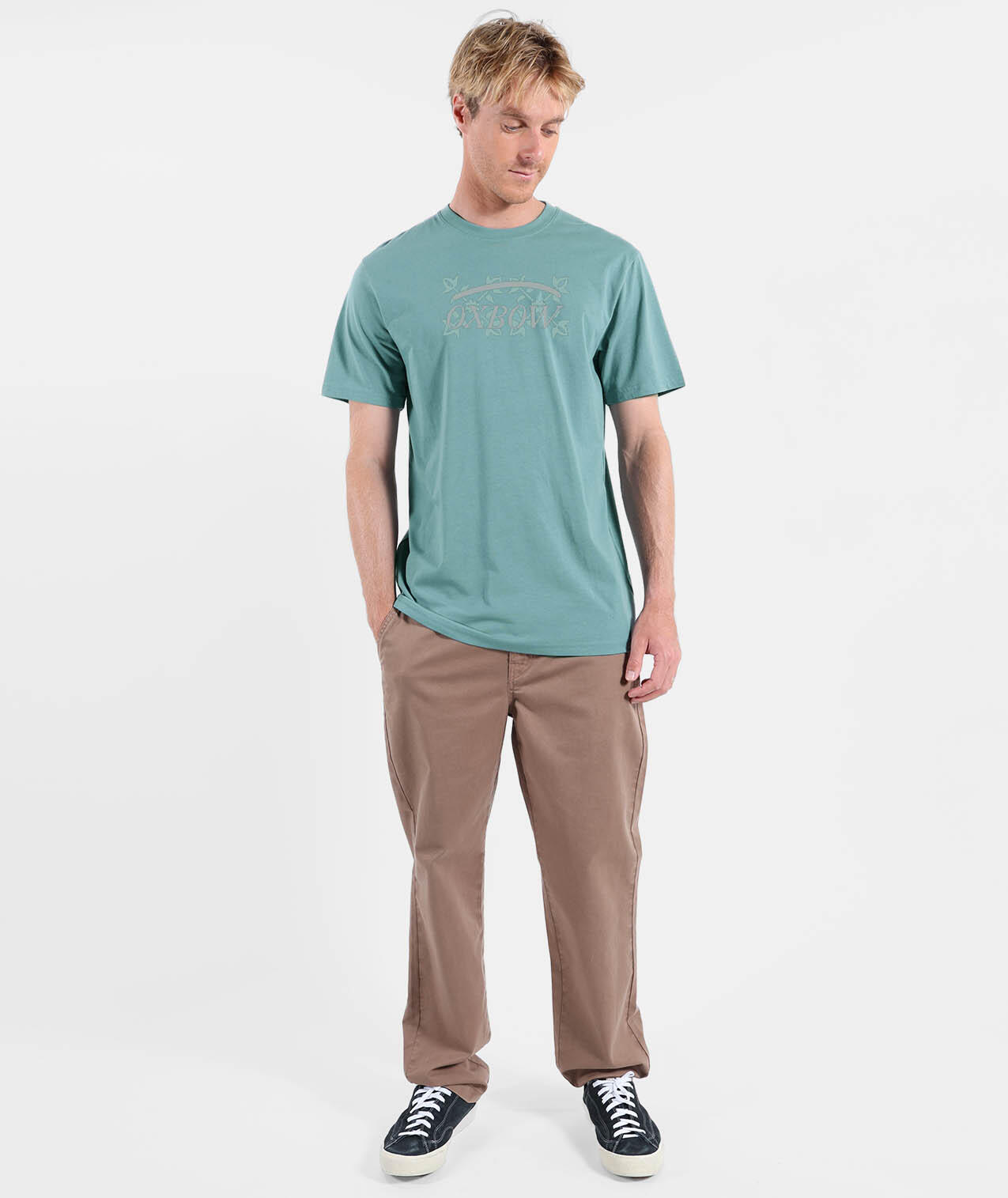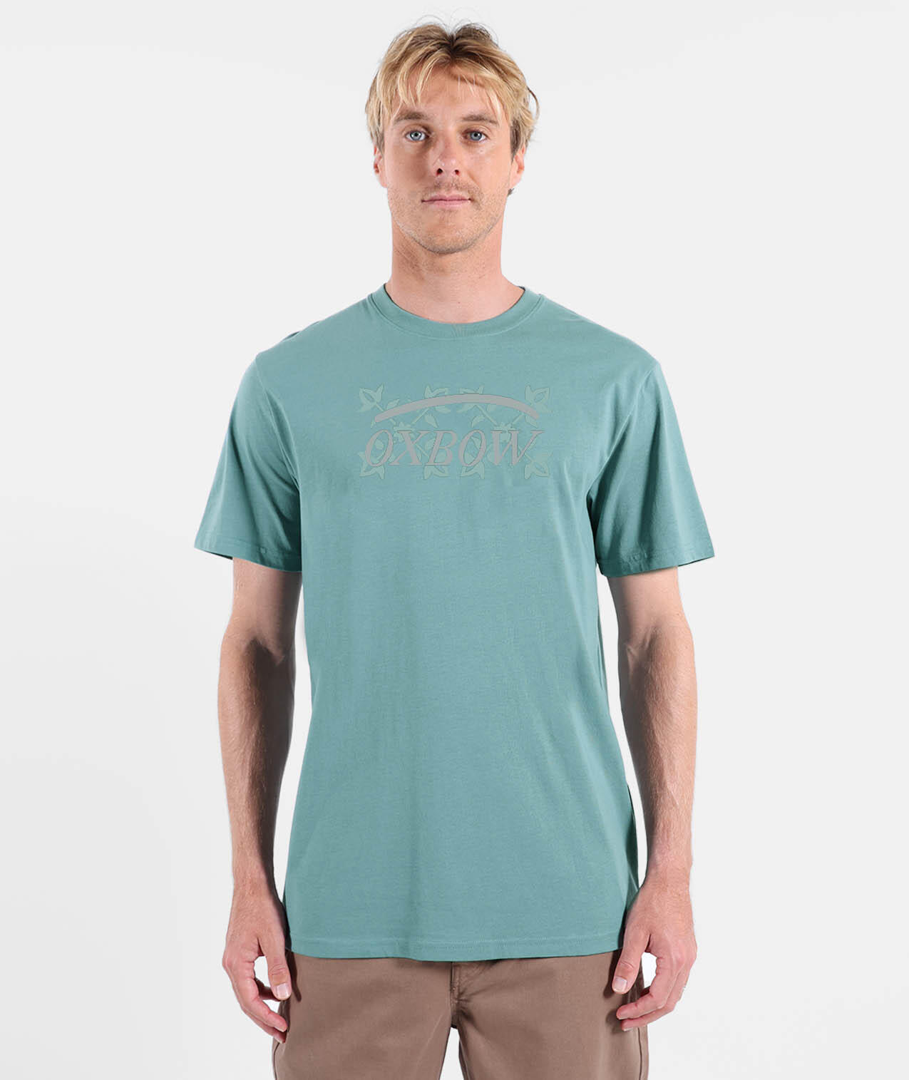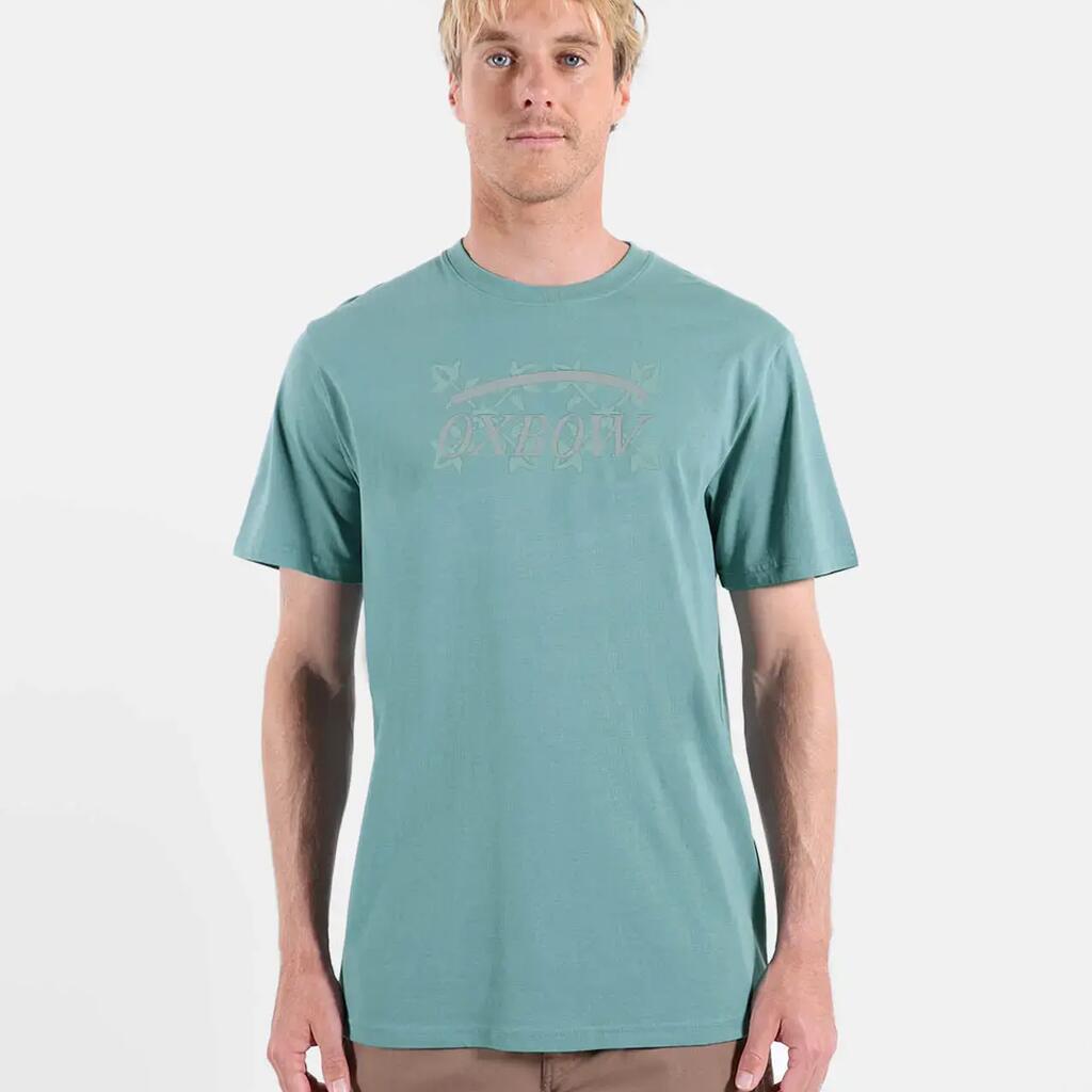 Crew neck tee, printed graphic on front, combed cotton and recycled polyester jersey