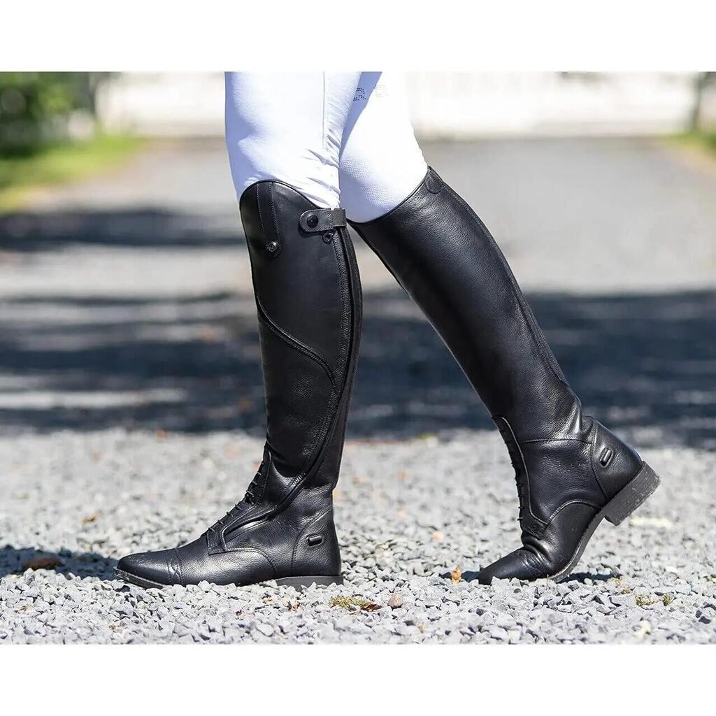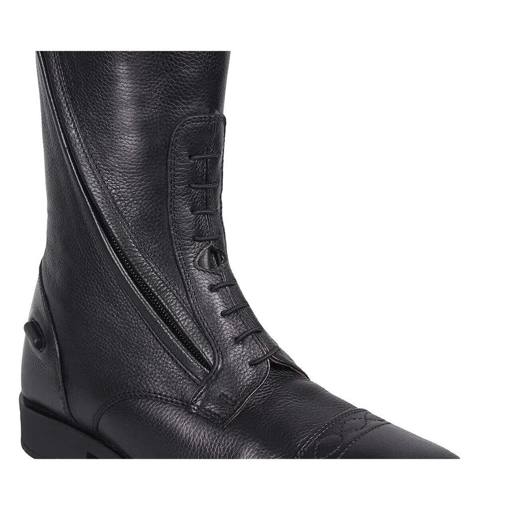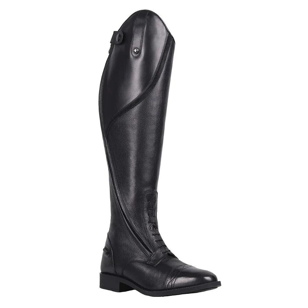 Elegant riding boot made from soft, high-quality leather. The decorative line on the boot gives it a stylish look. The angled position of the zipper ensures comfort and durability. Thanks to the soft leather, elastic lacing, and elastic insert at the back, it is a very comfortable boot to wear.