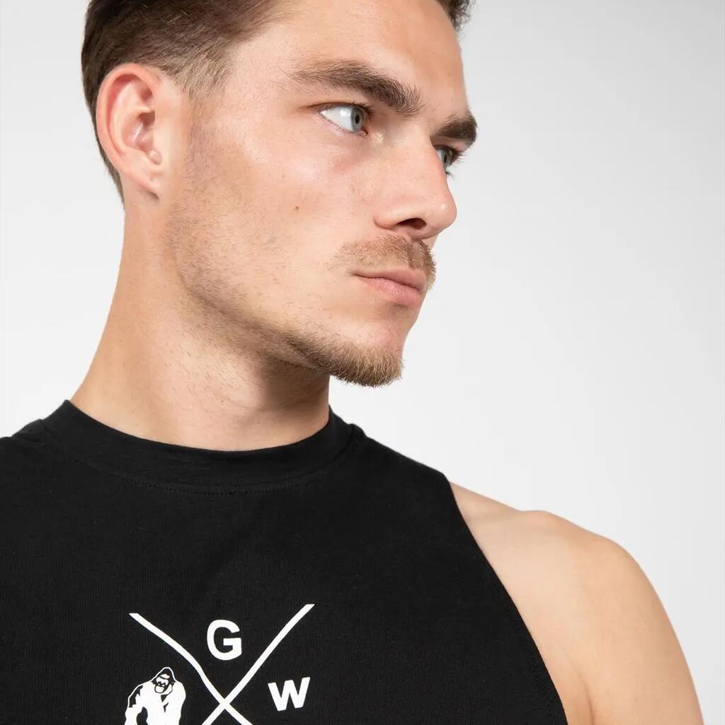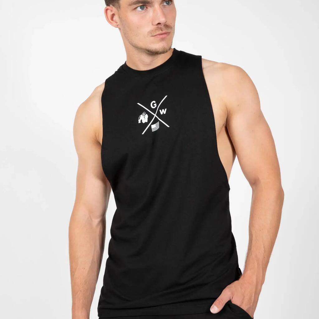 Boost your workouts with the Cisco tank top with drop armholes Gorilla Wear. Modern logo, freedom of movement and optimum comfort. Train like a beast.