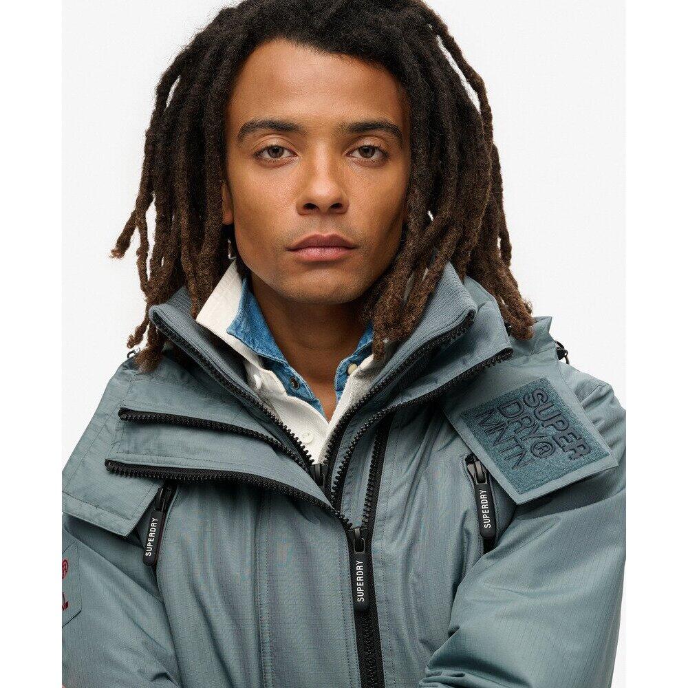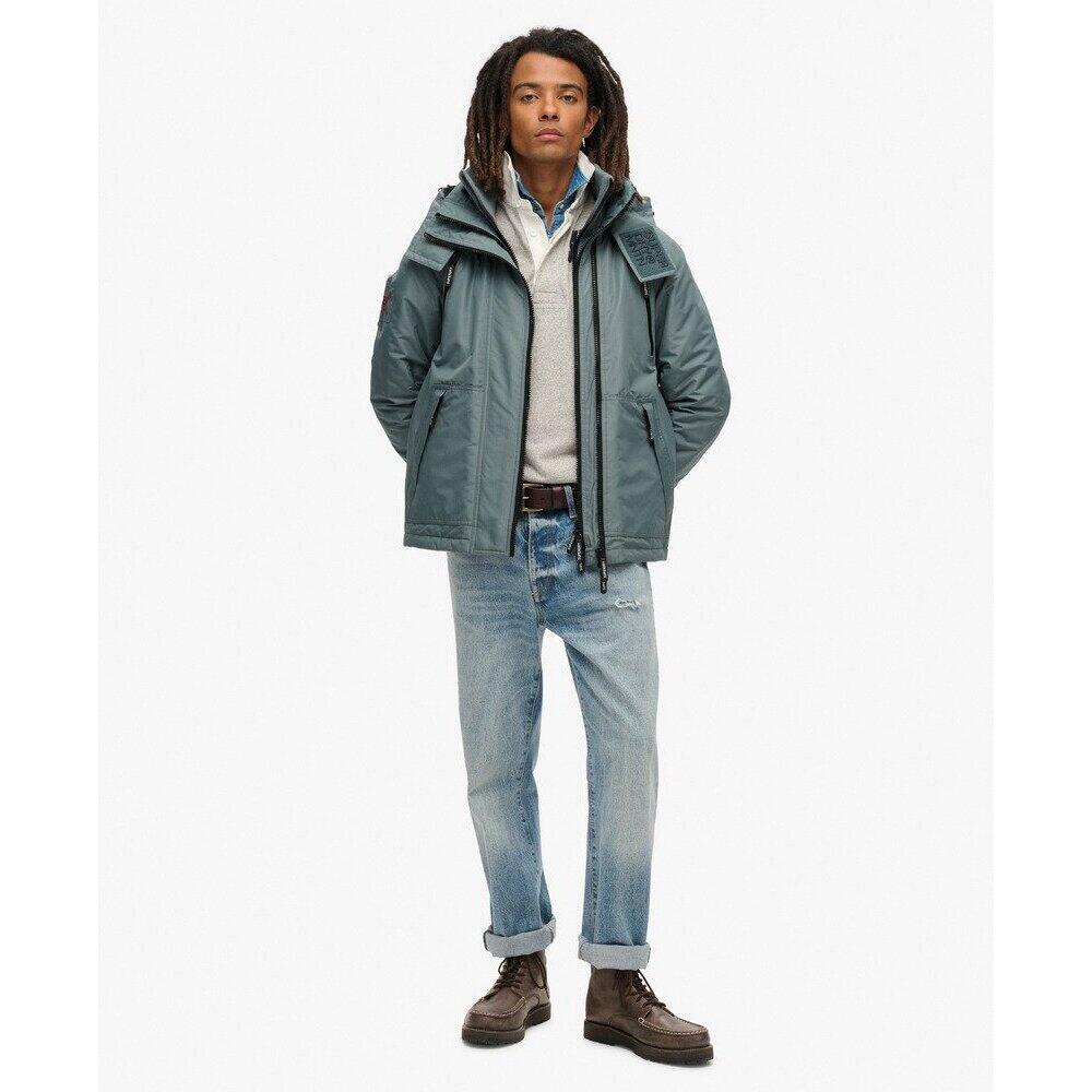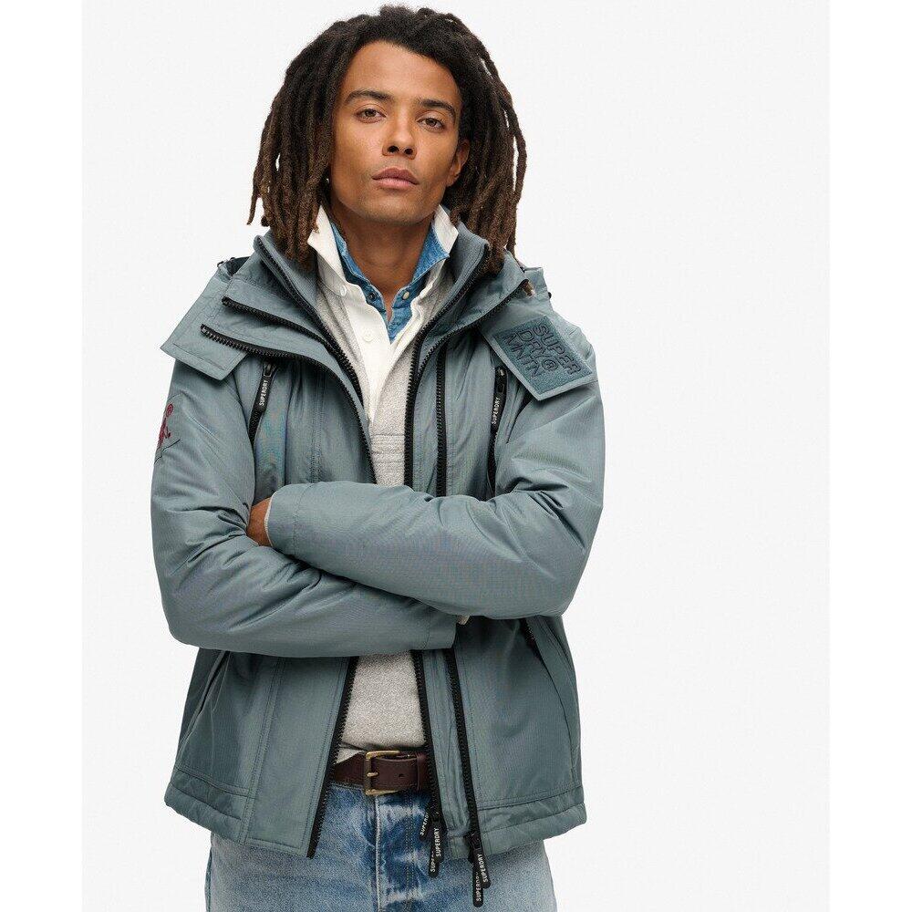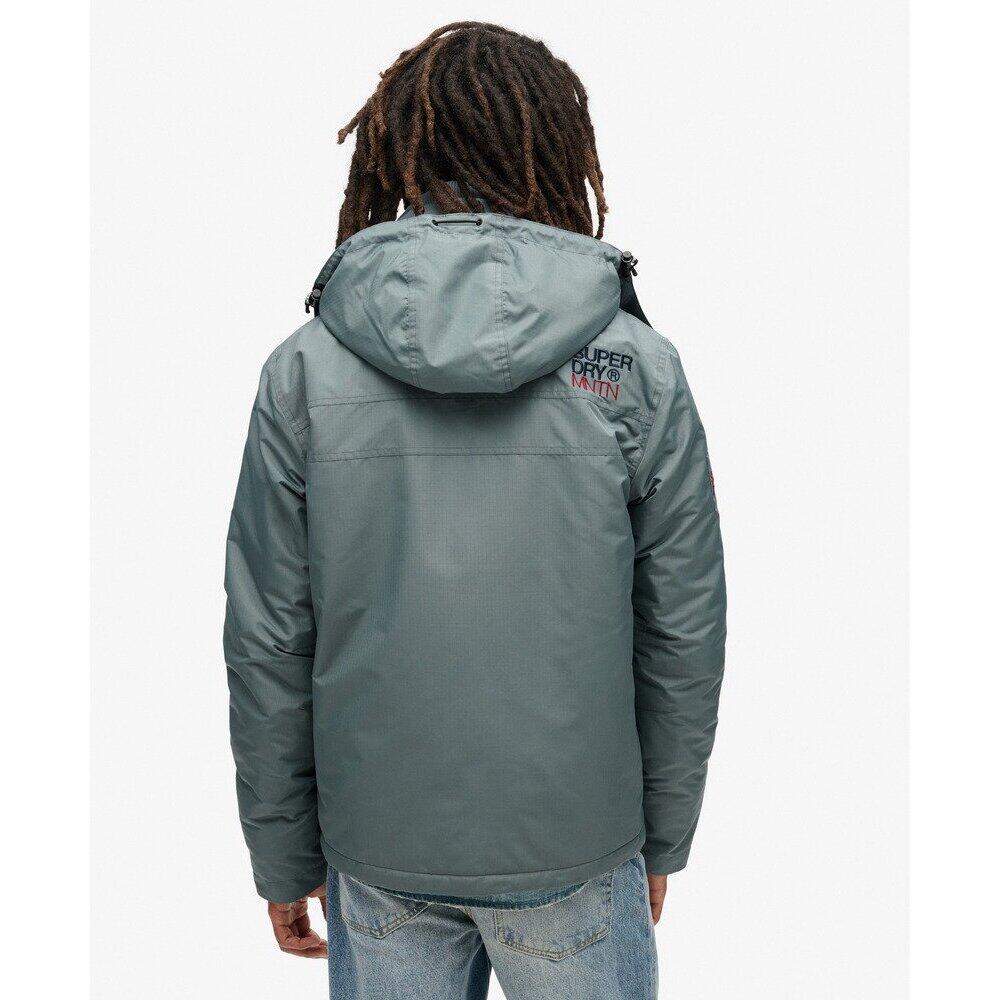 The Mountain Windbreaker hoodie jacket is the perfect companion for any windy outing, a reliable choice when the wind picks up and the sky darkens. It focuses on functionality without compromising on style to keep your look authentic. Featuring all the classic finishes of the original jacket, this model has been revamped to stay current, trendy, and especially practical for everyday wear. Set the tone and venture out with confidence in this jacket that has all the makings of a must-have. Slim fit for a tailored look. Durable water-repellent treatment - This material has been coated for superior waterproofing. Ribbed collar with Velcro. Lined hood with elastic drawstring. Two-way zip closure with triple thickness. Ribbed cuffs. Drawstring hem. Padded lining. Logo on the Velcro closure. Four zippered pockets at the front. Superdry embroidered logo on the back and on one sleeve.