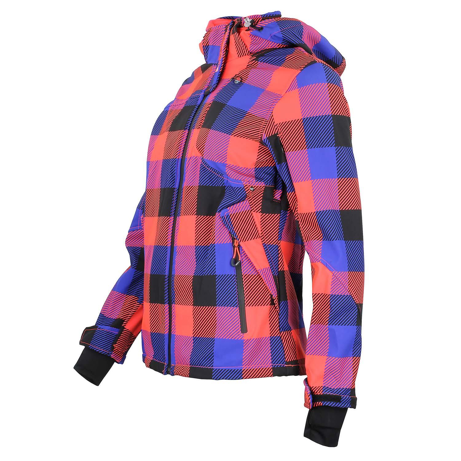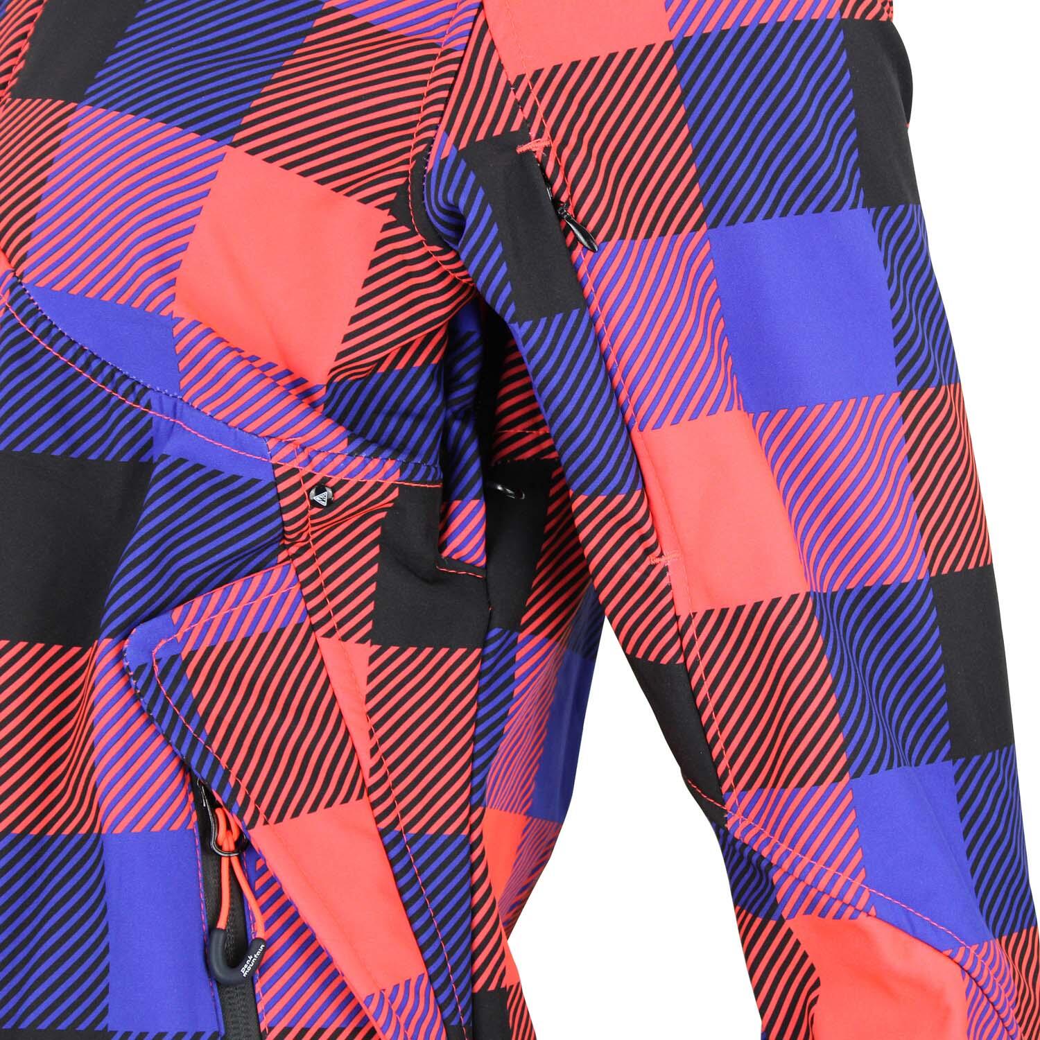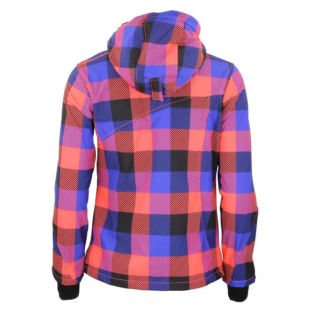 Discover our women's printed softshell jacket Peak Mountain Aveny, for an original look on the slopes with its removable hood and colorful motifs!