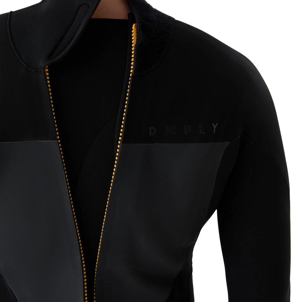 The Deeply 4/3 Back Zip Explorer II wetsuit is designed to deliver great mobility, excellent warmth, and maximum comfort during long sessions. This new generation features an improved design with strategic cuts on the legs, back, and shoulders, ensuring total freedom of movement and reducing any restriction. Made with Mineralprene, it stands out for its elasticity and durability. The soft C-FLEX 2.0 lining on the arms and legs provides greater comfort and heat retention, while the Deeply FastDry inner lining on the chest and back ensures quick drying and superior thermal performance. FastDry panels are glued and stitched, and the GBS seams are internally sealed with Neo Tape 2.0 elastic tapes to guarantee waterproofing and flexibility. The Back Zip system with a YKK closure offers a comfortable and practical entry, complemented by a chest panel adjustment to minimize water entry. The Glide Skin neck and seamless neck opening improve sealing, while rubber grip bars on the left shoulder and rubber rings on the cuffs reduce leaks in cold water. The wetsuit also includes high-density ergonomic knee pads, reinforced stress points, and a back key loop. With a 4/3 mm thickness and a design focused on performance and comfort, the Explorer II is ideal for water temperatures between 10 and 14°C.