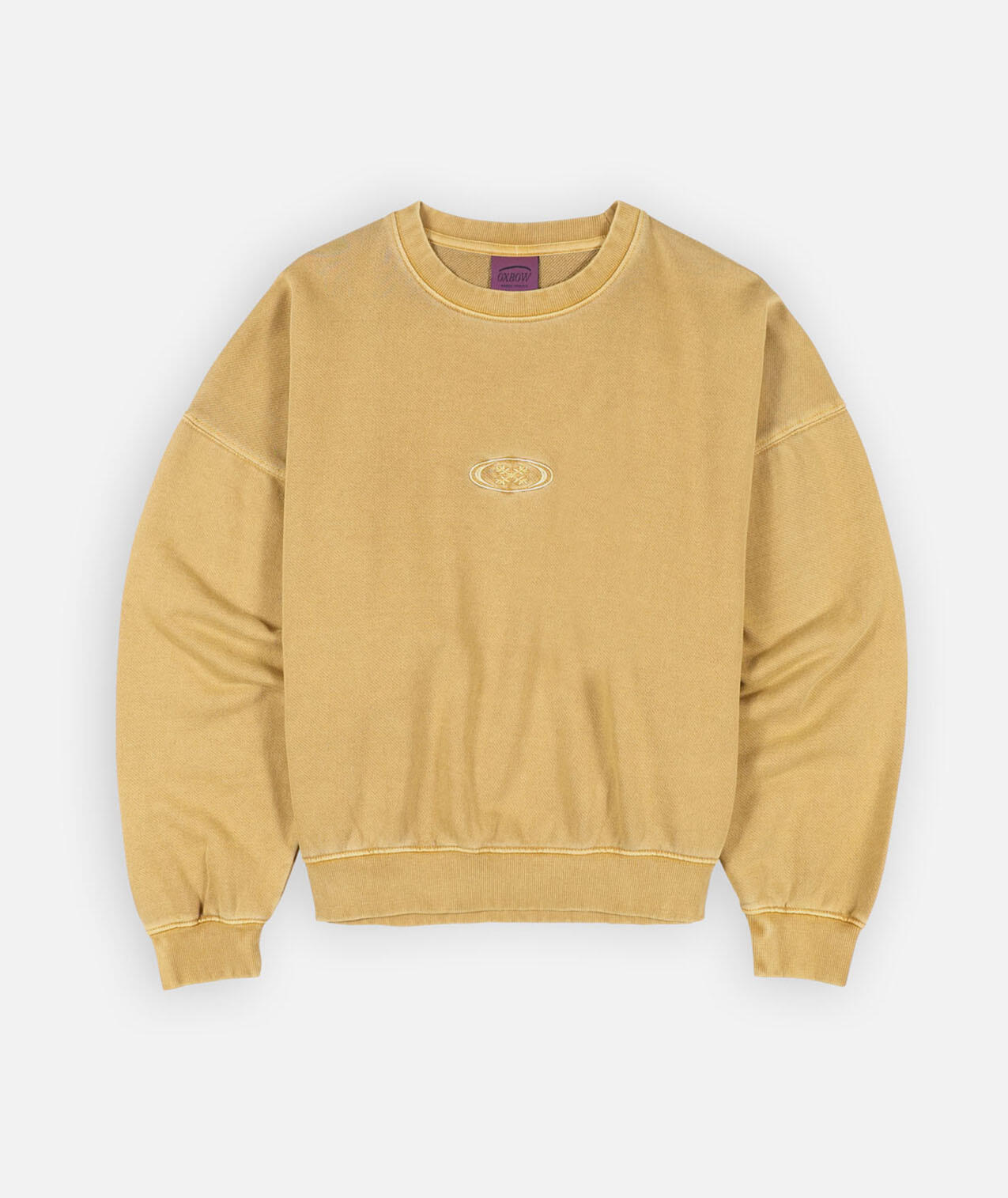 Oversized crewneck sweatshirt in 300 gsm french terry, pigmented, old-school central logo embroidery.