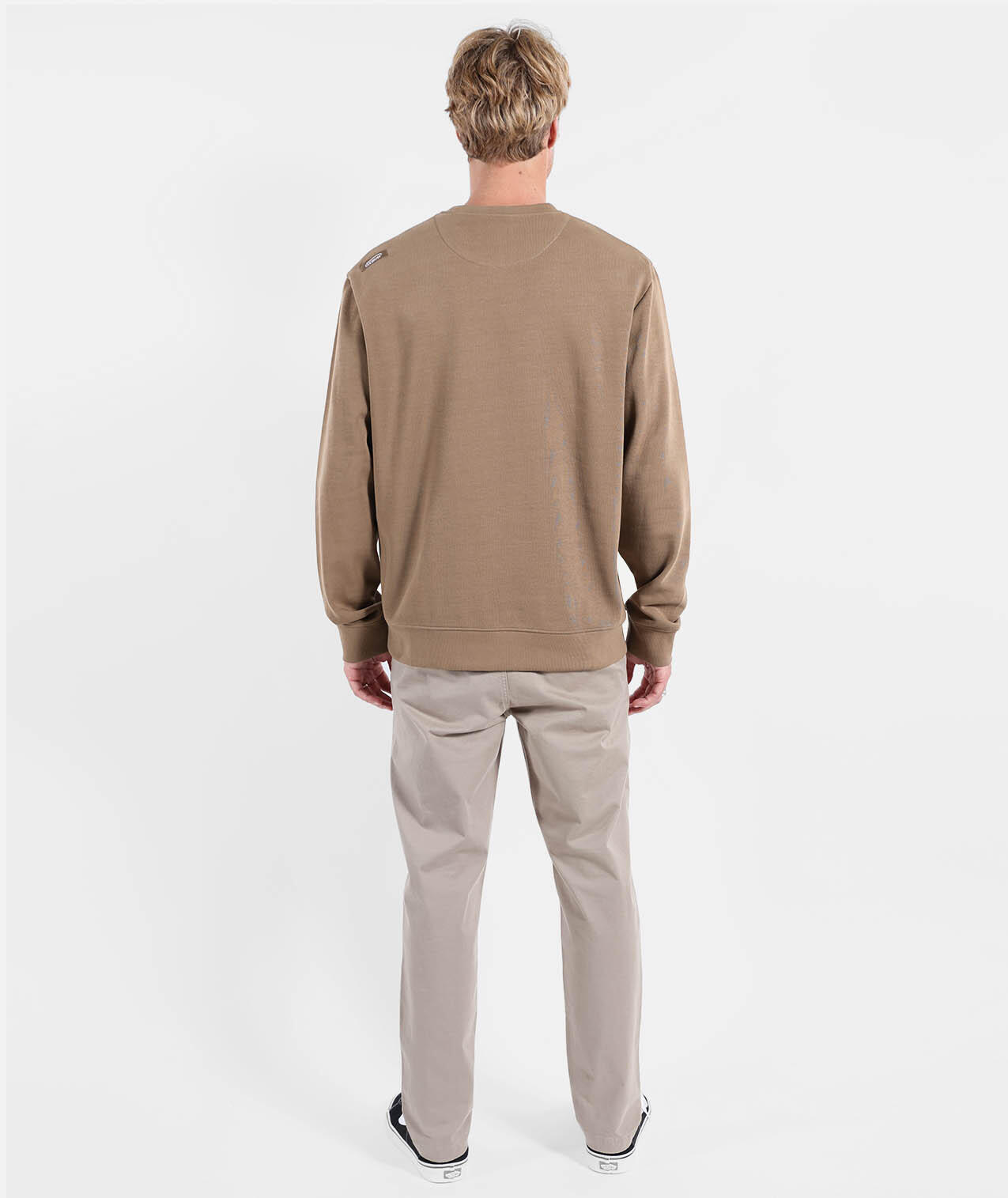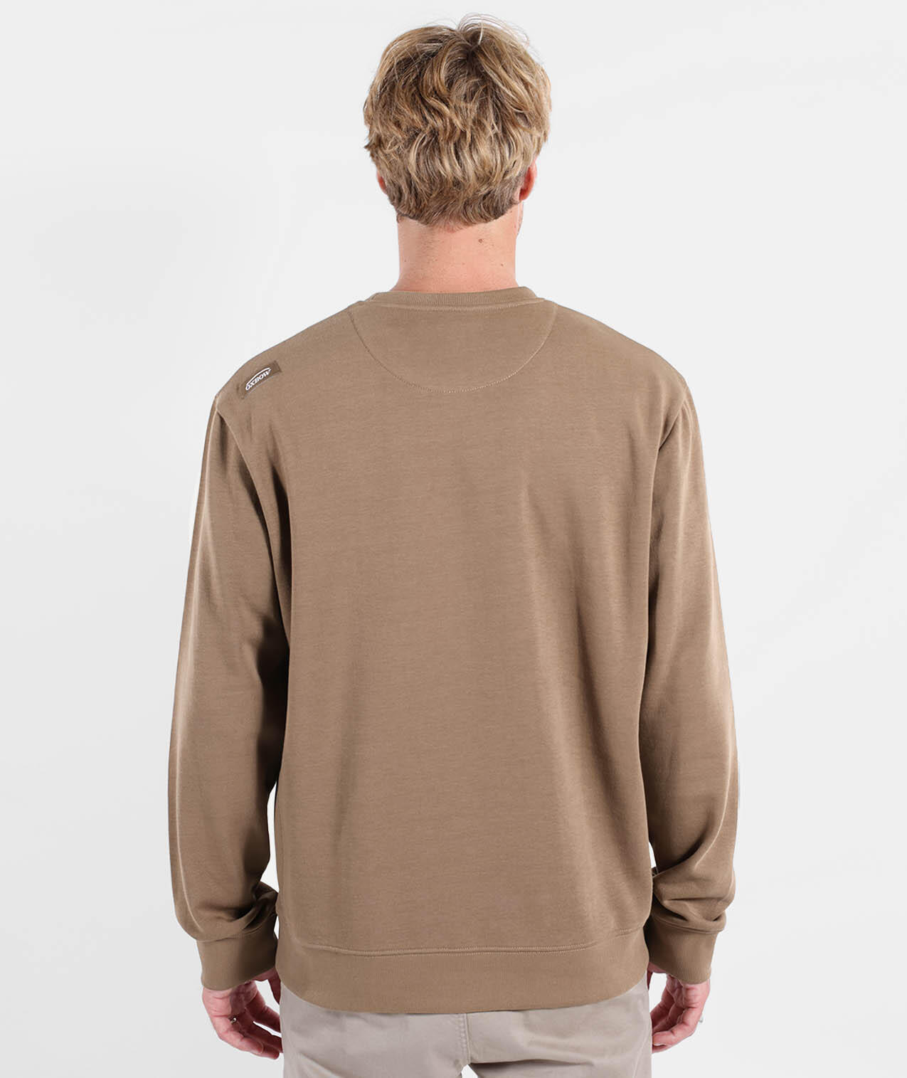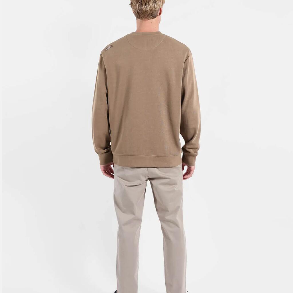 Crew neck sweatshirt, ribbed edges with side panels, embroidered 4F logo on chest, printed half-moon, brushed fleece