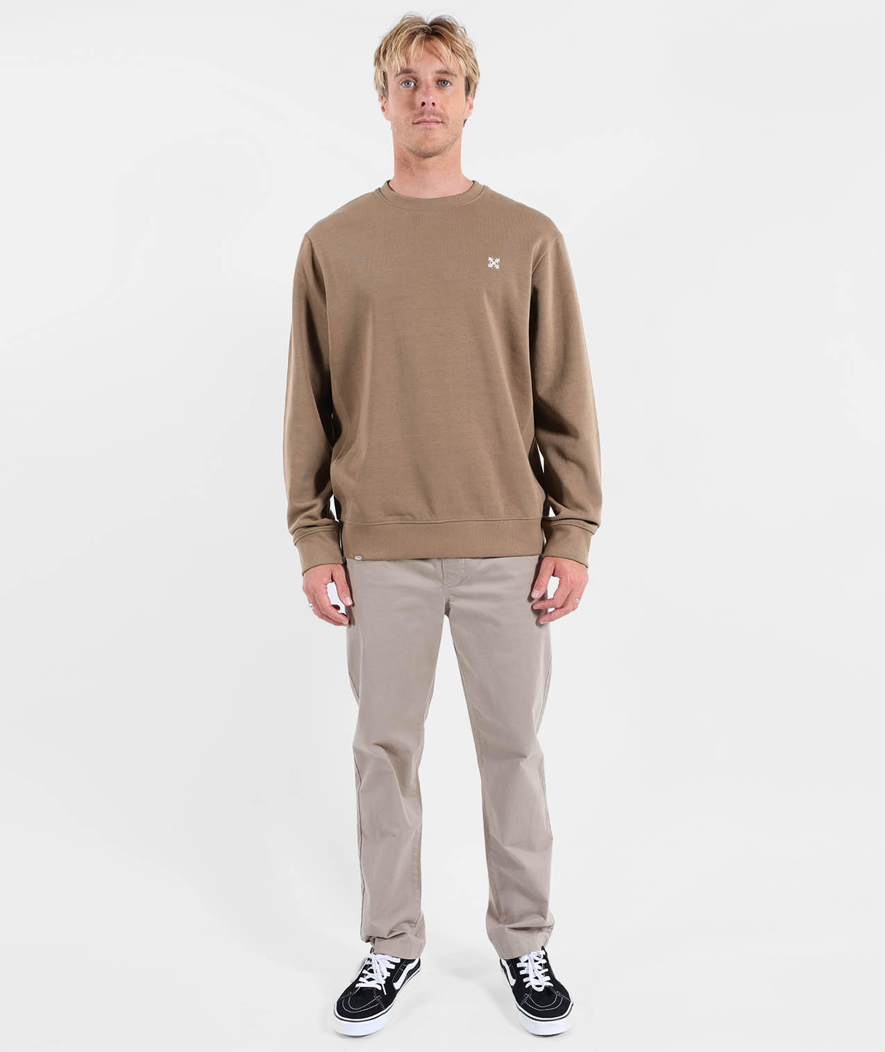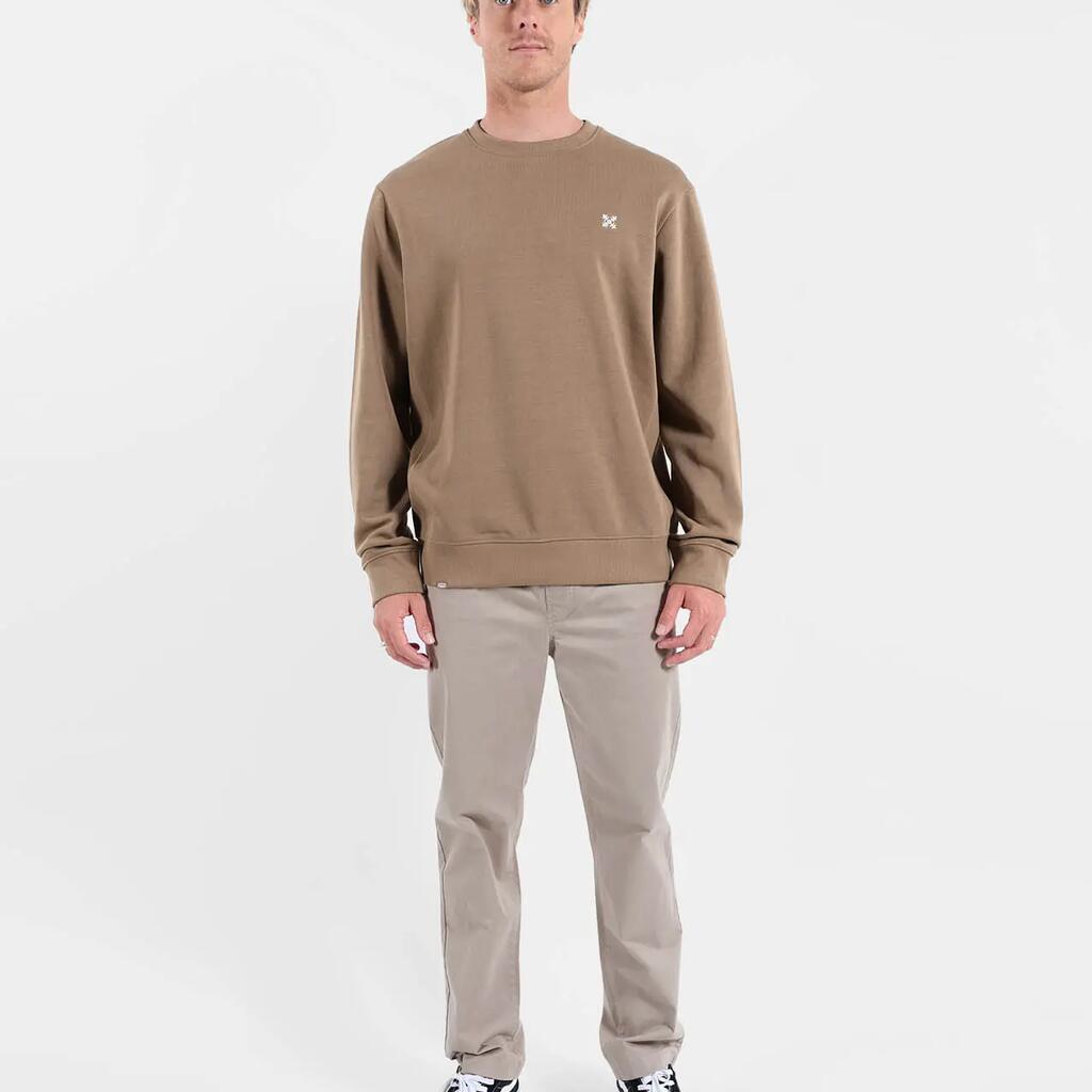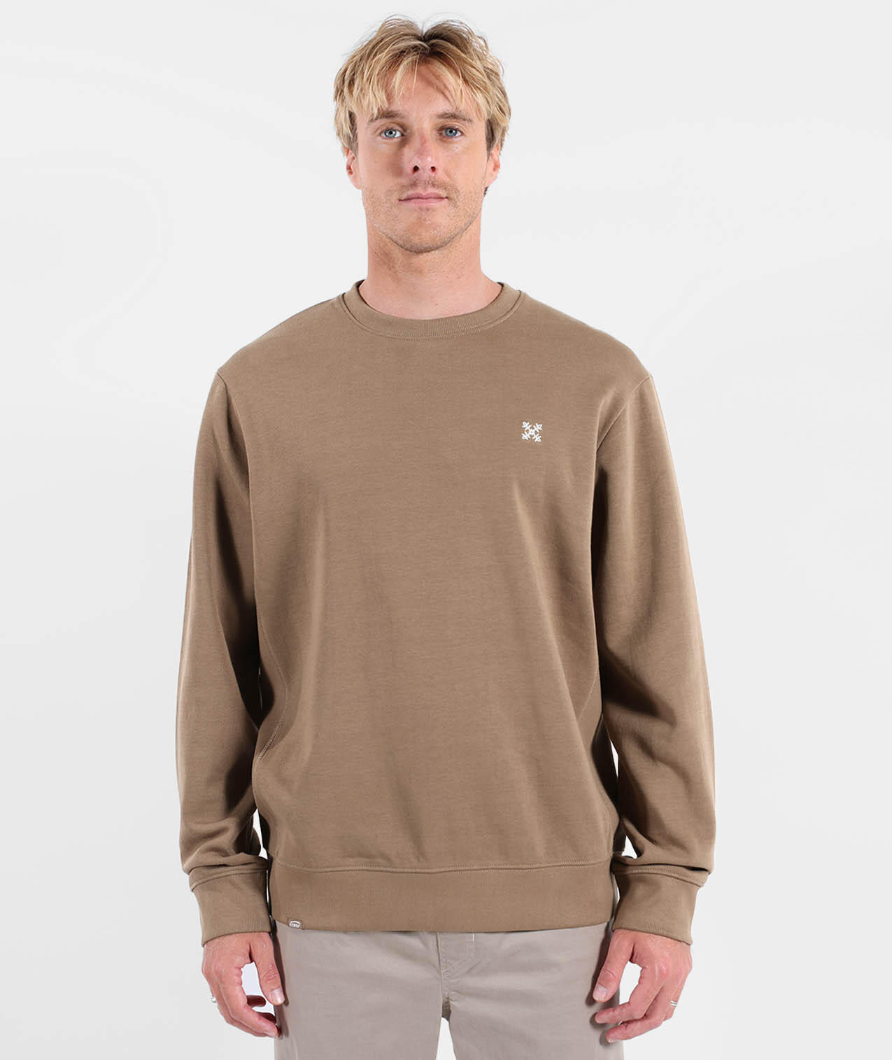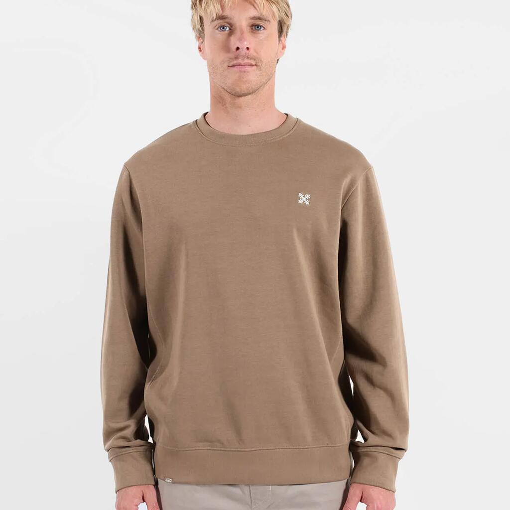 Crew neck sweatshirt, ribbed edges with side panels, embroidered 4F logo on chest, printed half-moon, brushed fleece