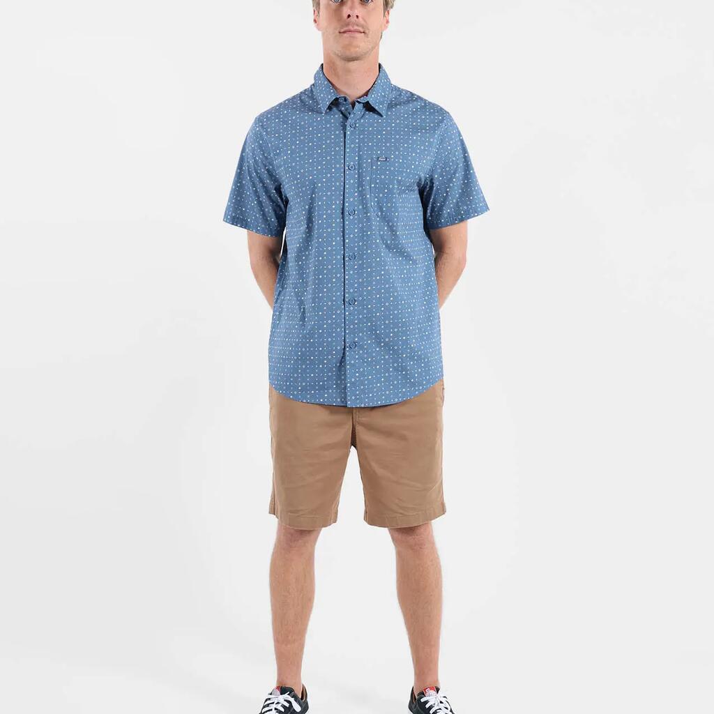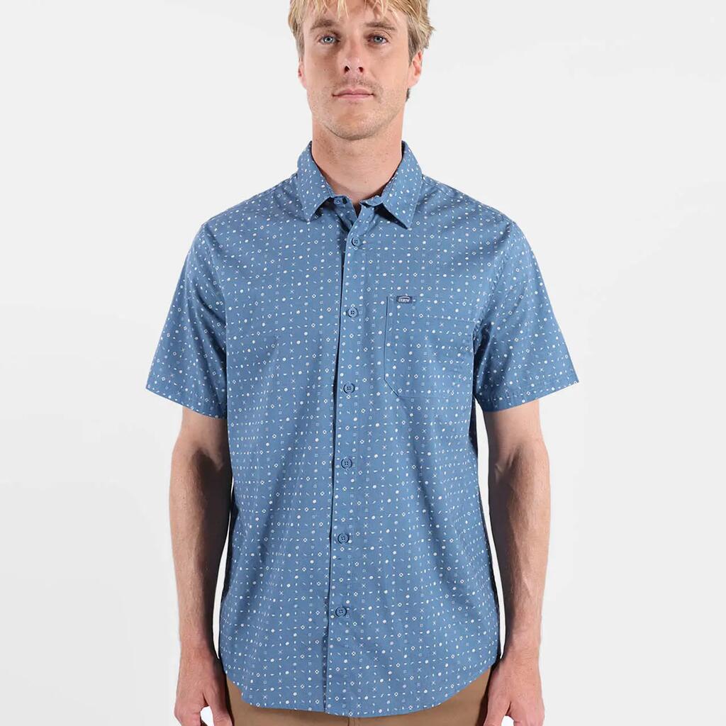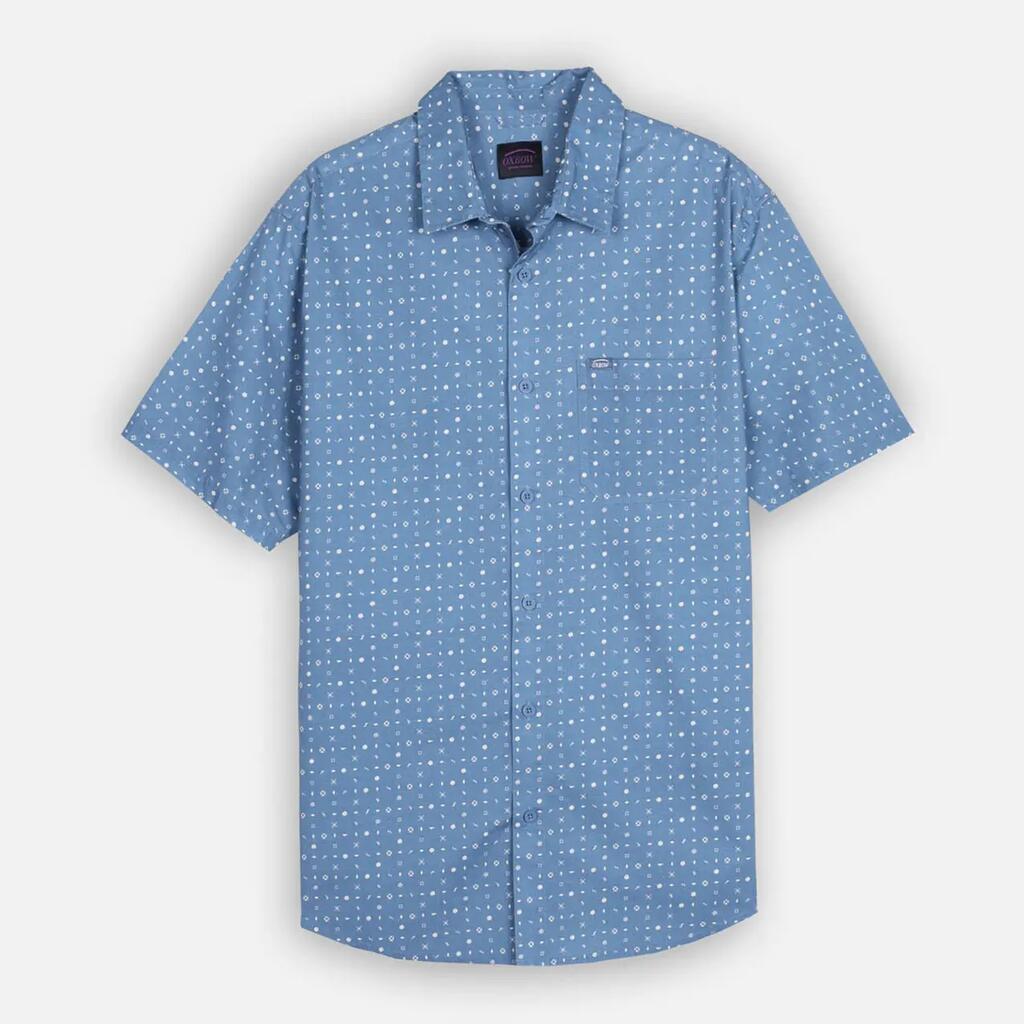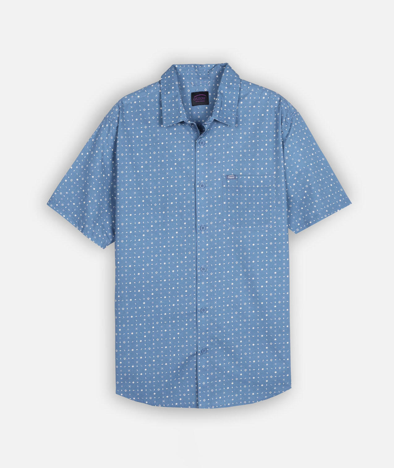 Short-sleeve Italian collar shirt, microprint allover, chest patch pocket with woven label, stretch cotton poplin (98% cotton, 2% elastane).