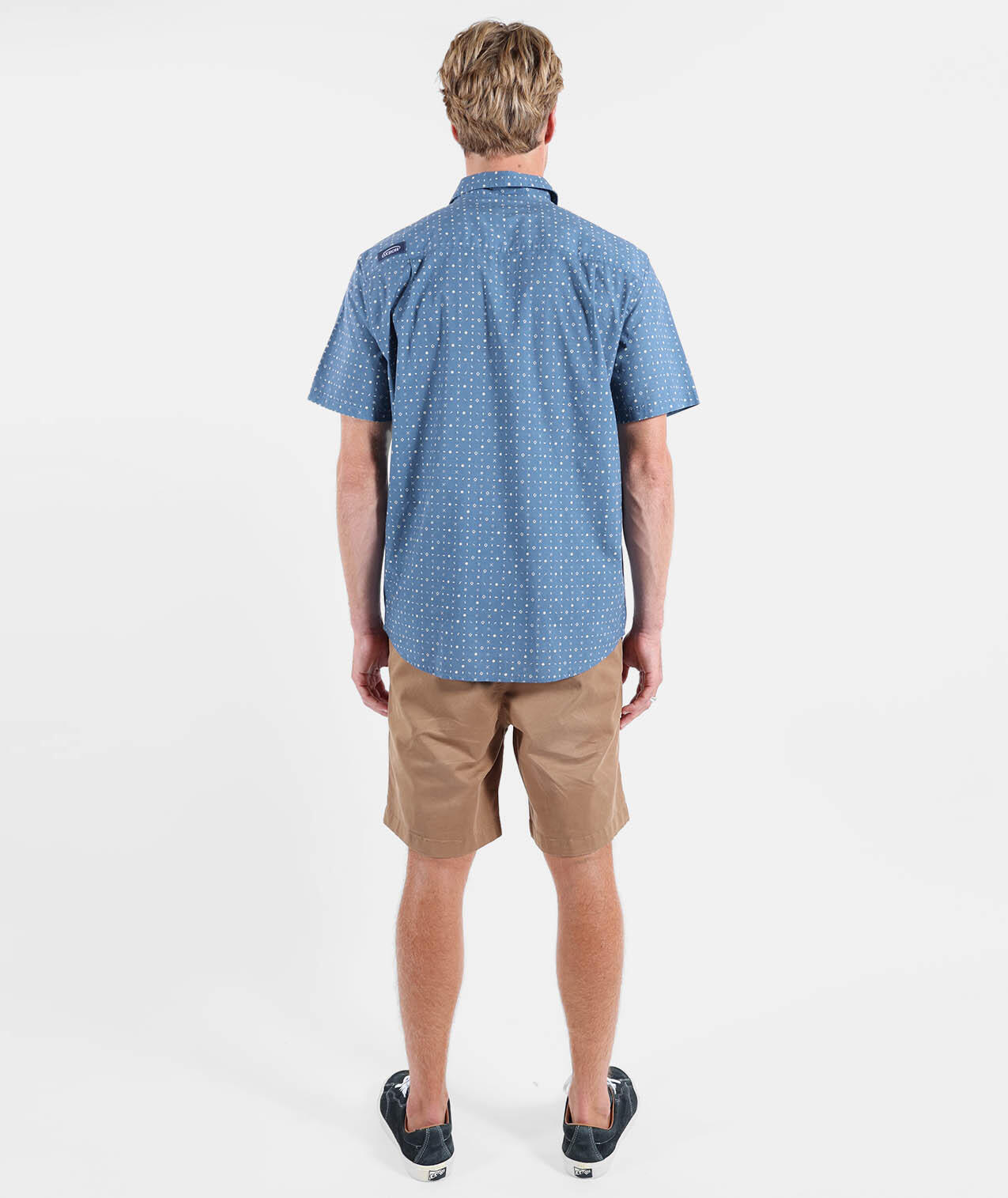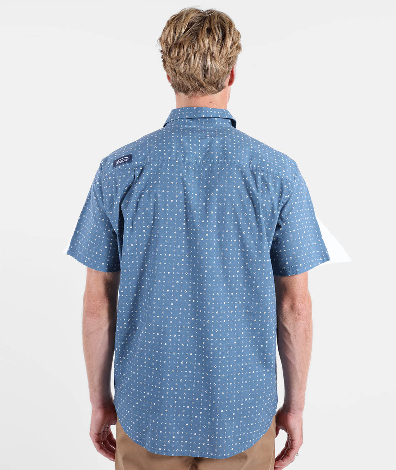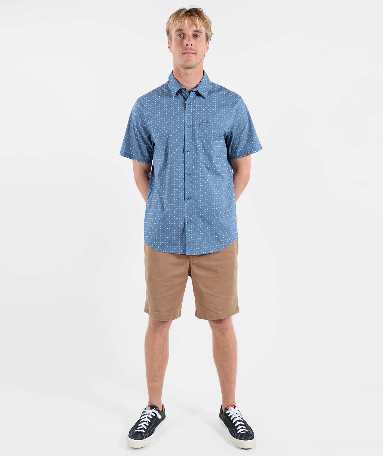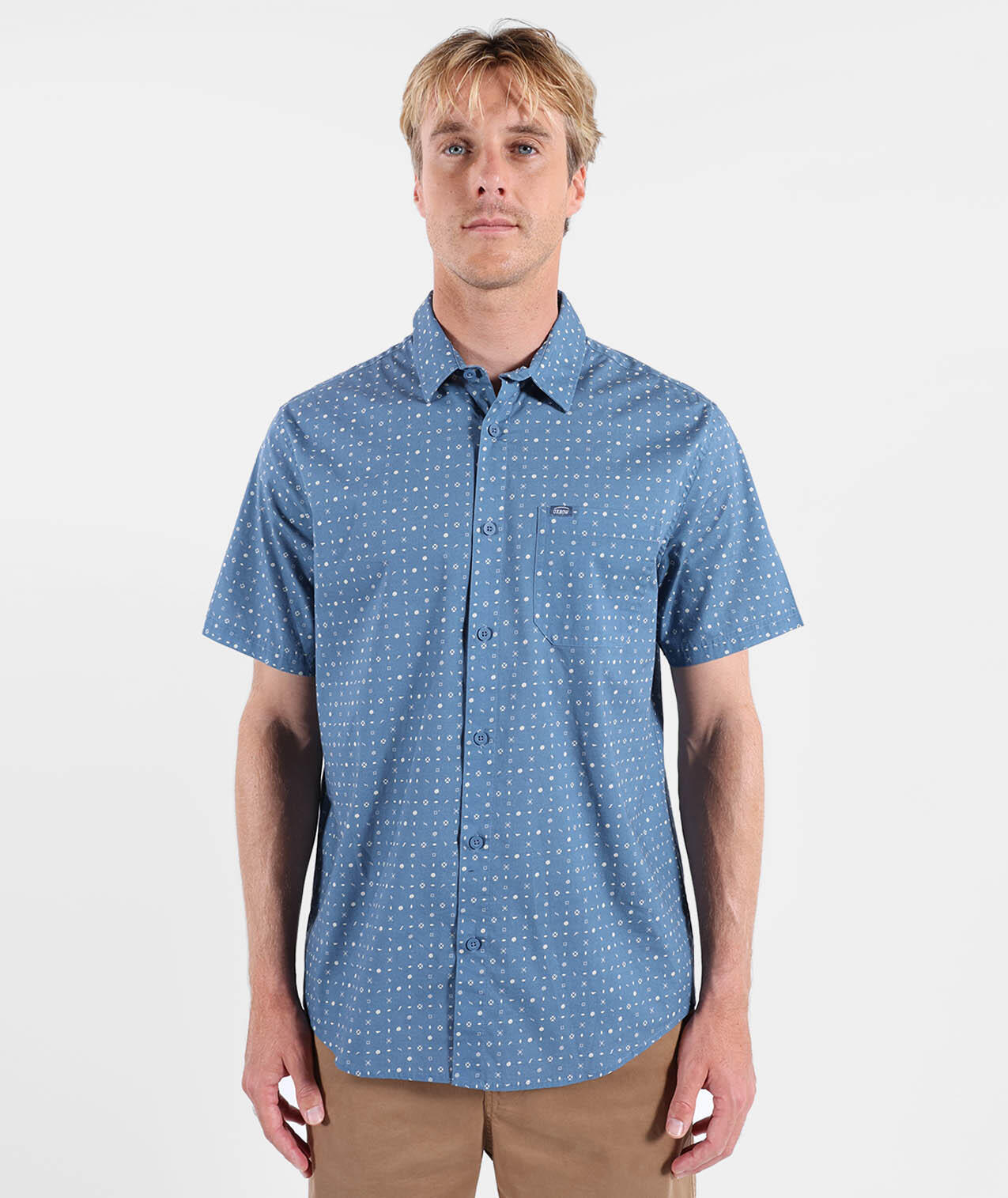 Short-sleeve Italian collar shirt, microprint allover, chest patch pocket with woven label, stretch cotton poplin (98% cotton, 2% elastane).