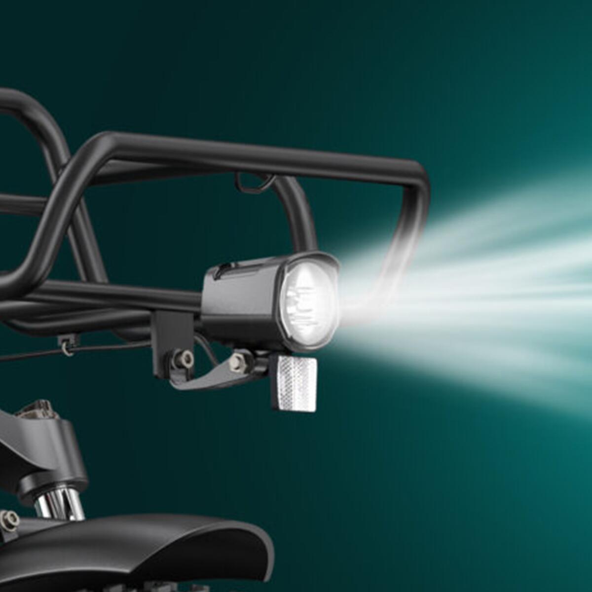 Stay safe with integrated taillights, brake lights, and powerful front headlights on this urban electric bike. These features ensure maximum visibility, automatically activating when you brake for added security during nighttime rides.