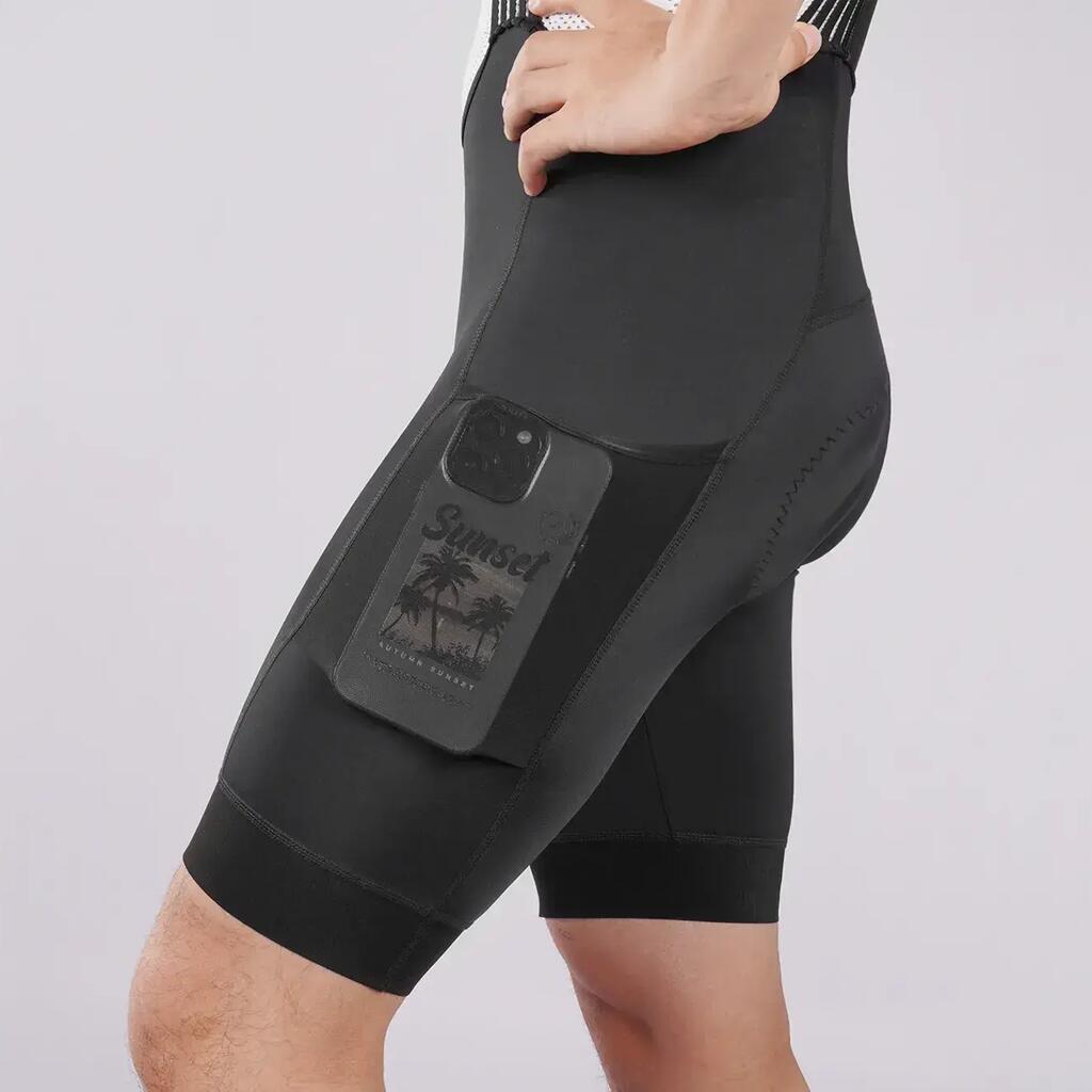These black cargo bib shorts are designed for demanding cyclists looking for comfort, stability and storage during long rides. The 4-way stretch fabric adapts perfectly to the body and provides excellent freedom of movement.