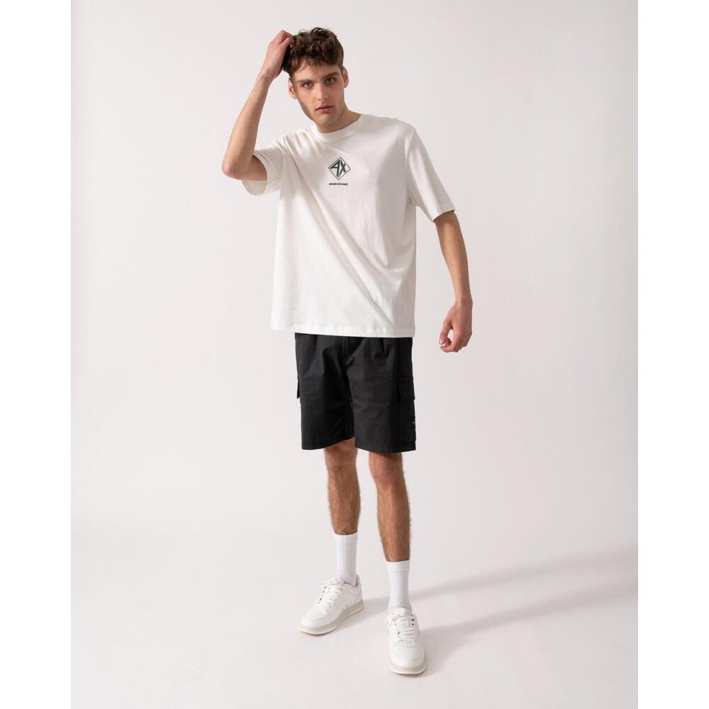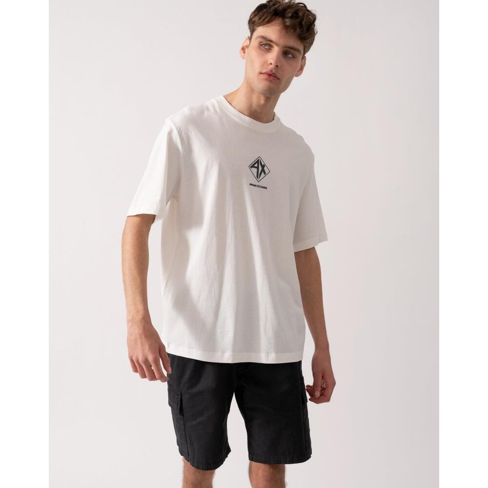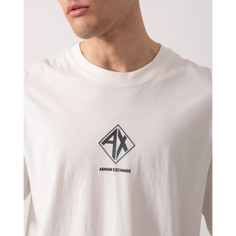 Armani Exchange men's off-white cotton T-shirt with a subtle logo print. Regular fit, round neck, short sleeves, crafted from soft, breathable high-quality cotton for versatile casual wear