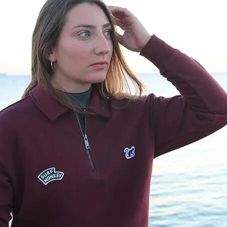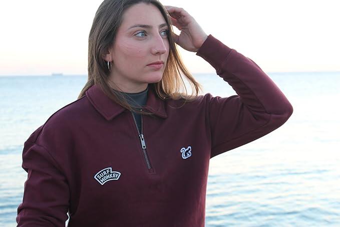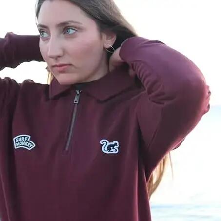 Quarter-Zip Sweatshirt - Polo Shirt - Cotton - Adult (Maroon)
