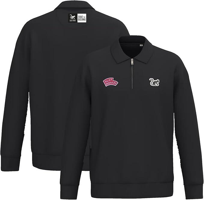 Quarter-Zip Sweatshirt - Polo Shirt - Cotton - Adult (Black)