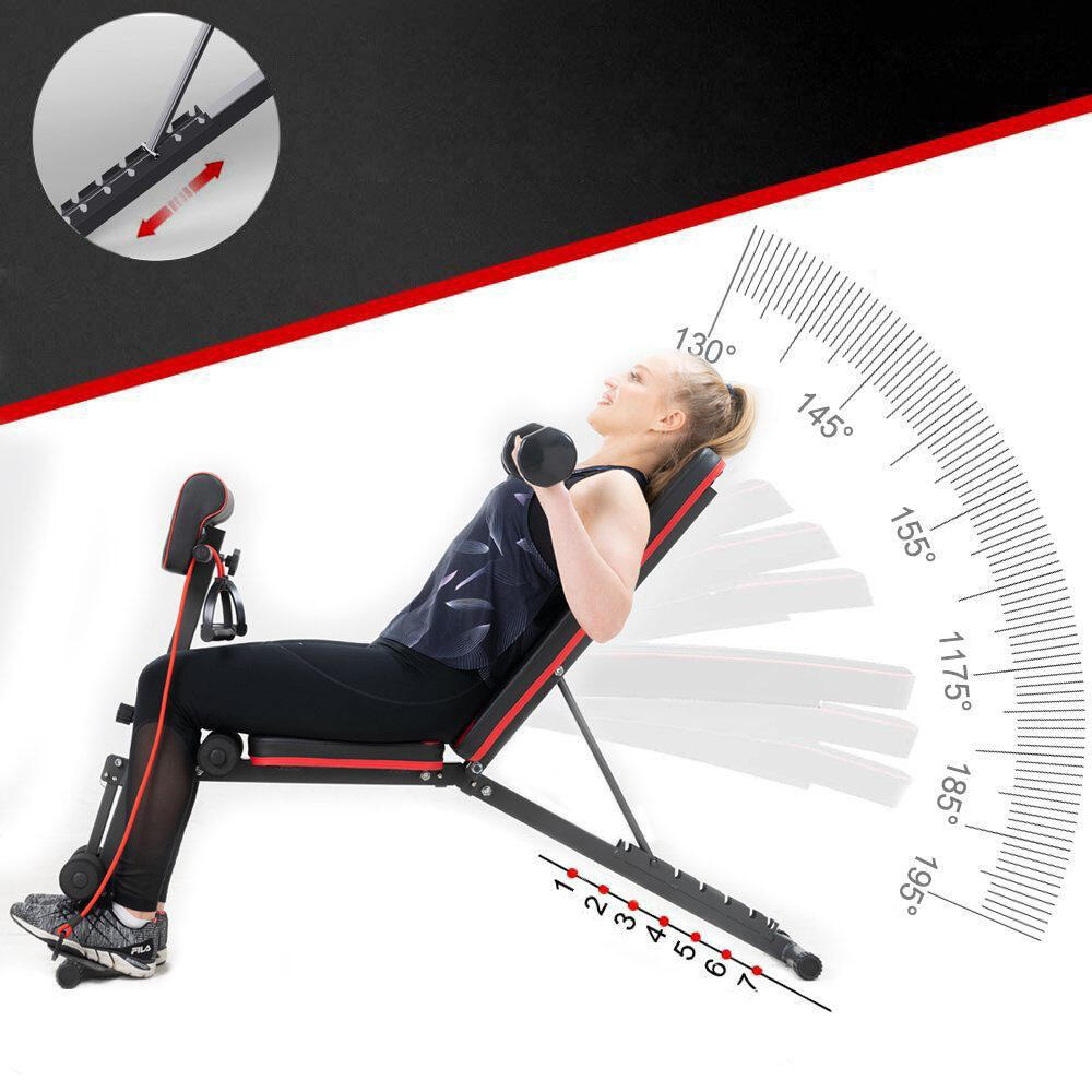 With 7 adjustable backrest positions, this weight bench supports a complete full-body workout. Simply pull the quick-release bolt to adjust the space to suit your needs. Ideal for training the chest, shoulders, back, and abs effectively.