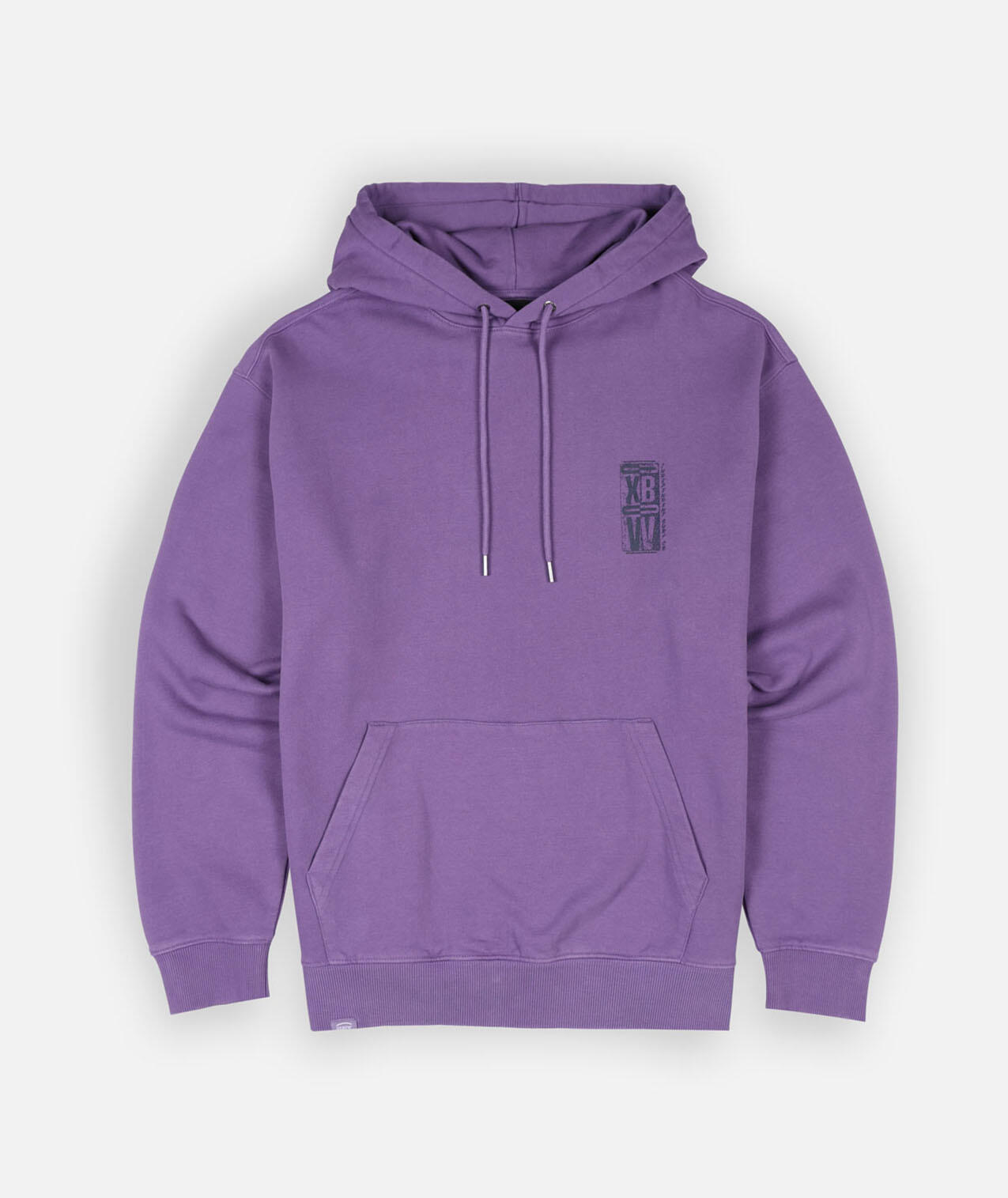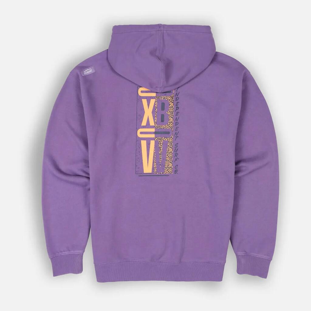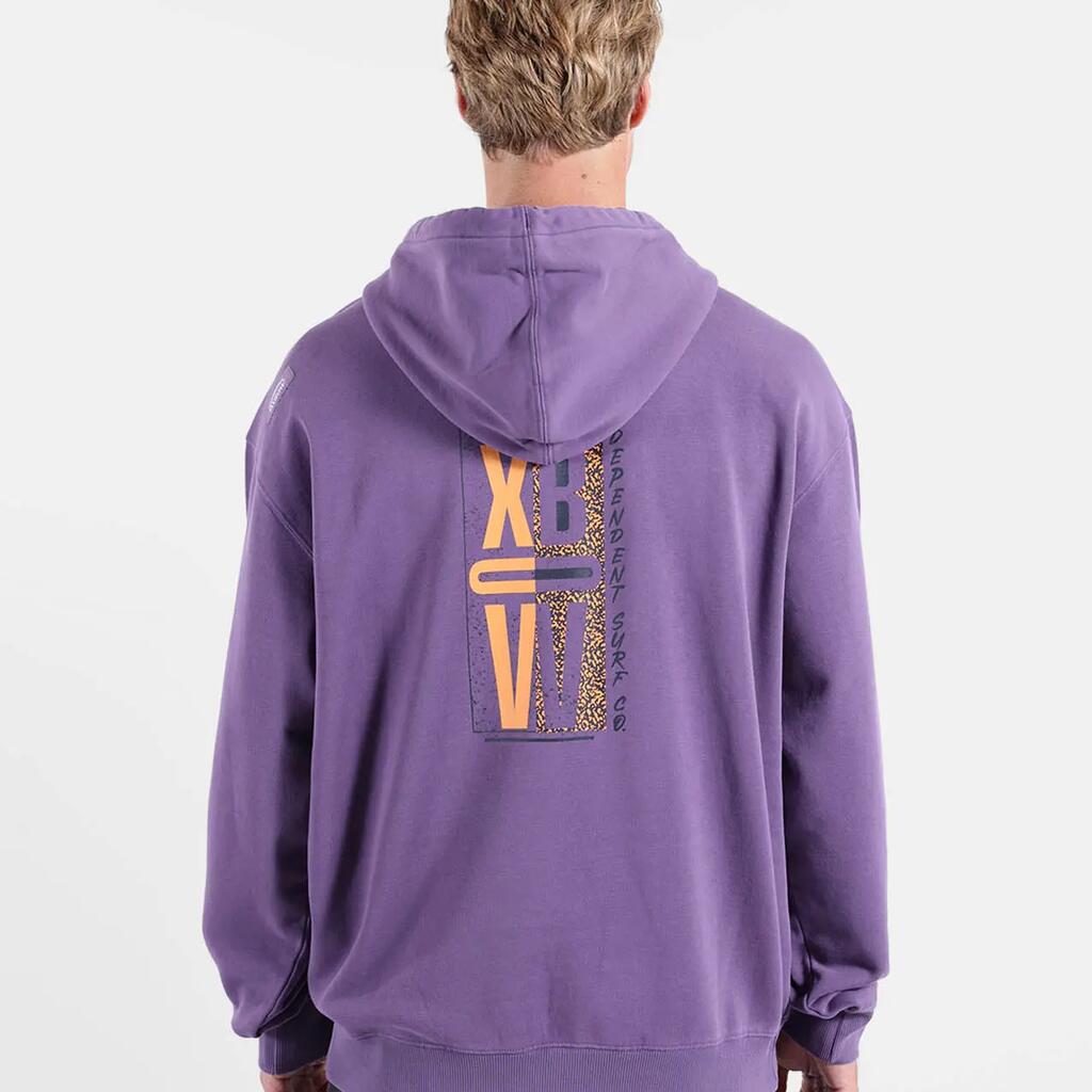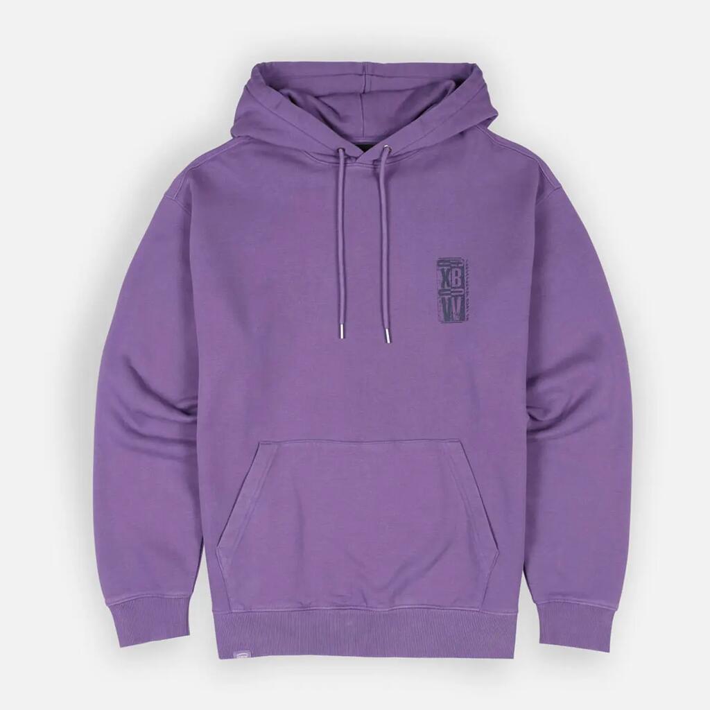 Hooded sweatshirt, ribbed edges, hood with drawstrings, printed graphic on back with chest detail, kangaroo pocket, heavy brushed fleece, dip-dyed and washed for faded colors effect