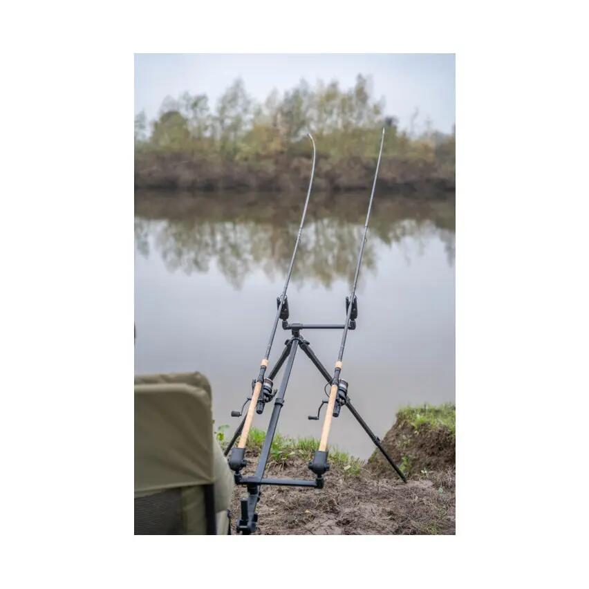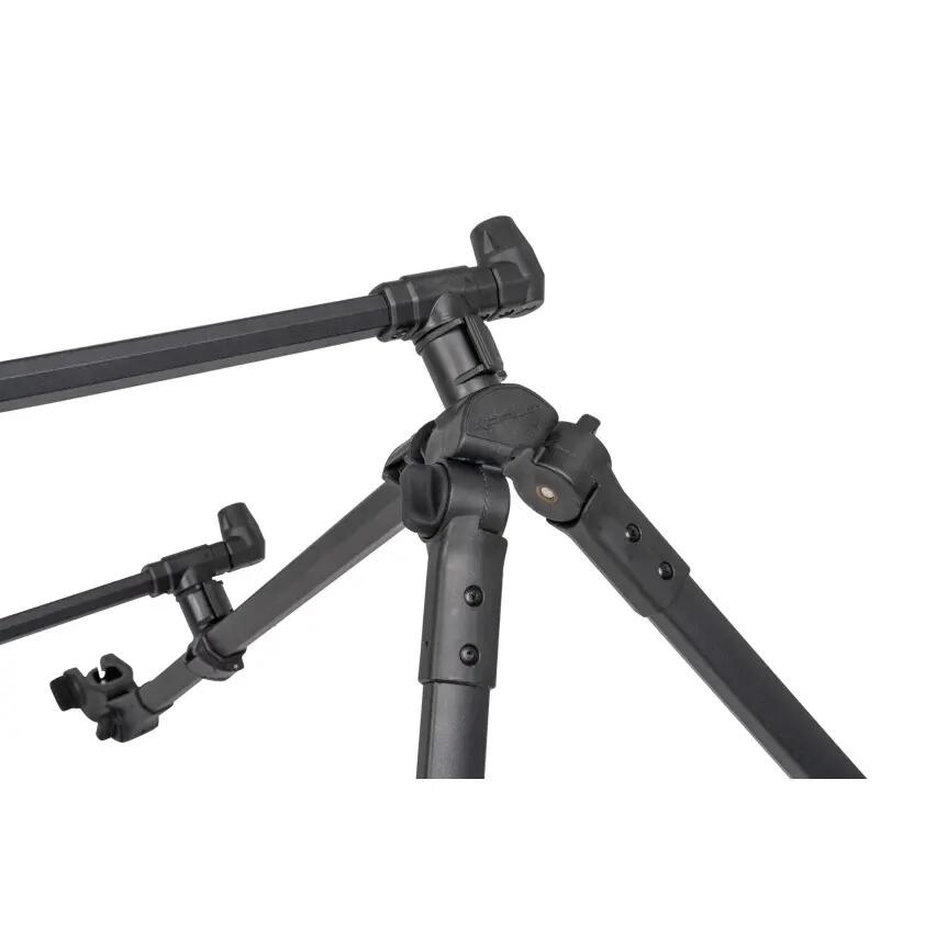 Tripod Korum Progress Feeder Arm for 2 rods. Now with front and back buzz bars, this super stable equipment is made with anti-twist extrusions that provide a totally stable platform for your rods and reels. The frame can be extended during use but folds down compactly thanks to double extension cam locks, making it much more compact for transport. The offset and thick buzz bars are incredibly strong and feature our brilliant no net quick release system, so you don’t need to screw and unscrew them to use or remove them—just flip the cam switch and you’re ready to go! The rear buzz bar can be adjusted to different positions on the frame. Both buzz bars come with threads for adding rod support or bite alarms. The front legs can be adjusted to almost any angle and also feature height adjustment via cam switches. Transport size: H61cm x W12cm x D12cm. Front leg length: 60cm-120cm. Front buzz bar: 34cm. Rear buzz bar: 30cm.