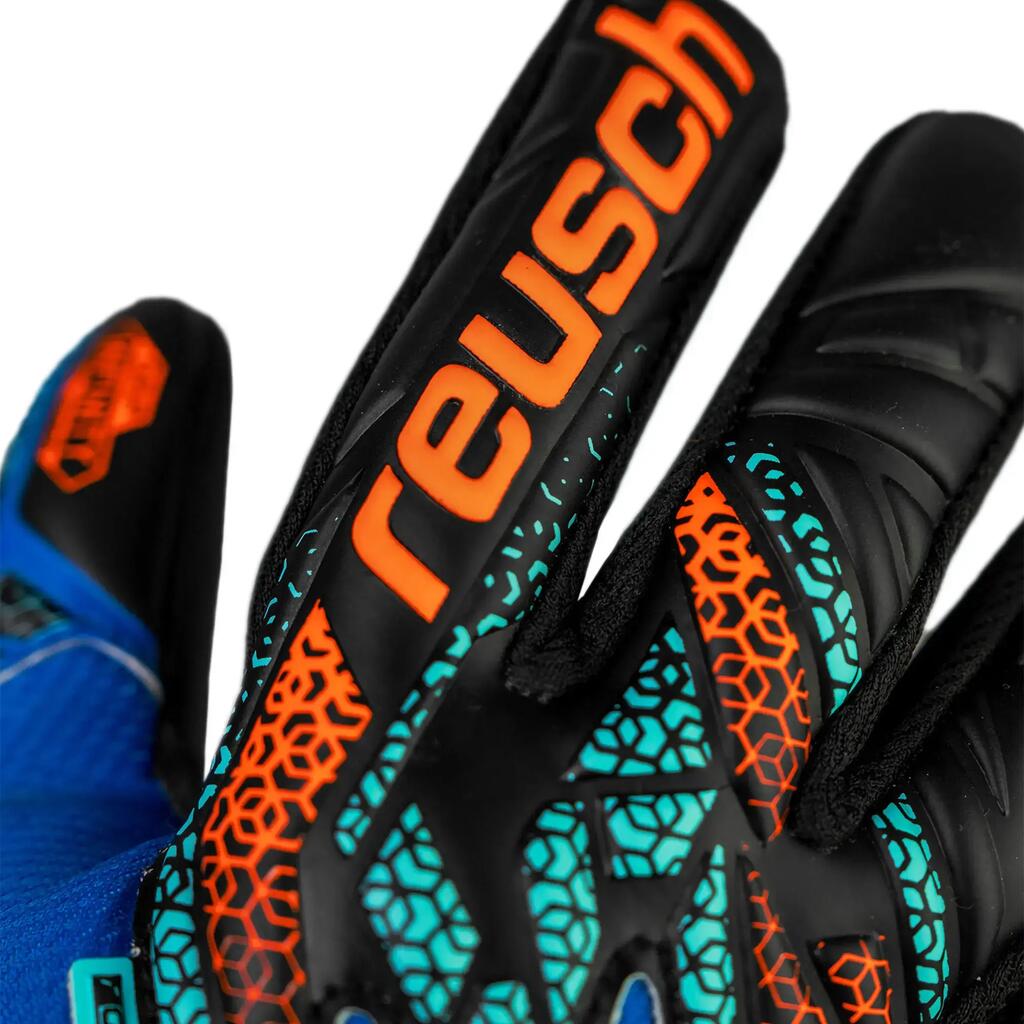 Give your junior goalkeeper uncompromising control on the pitch with the Reusch Attrakt Infinity NC gloves for football.
