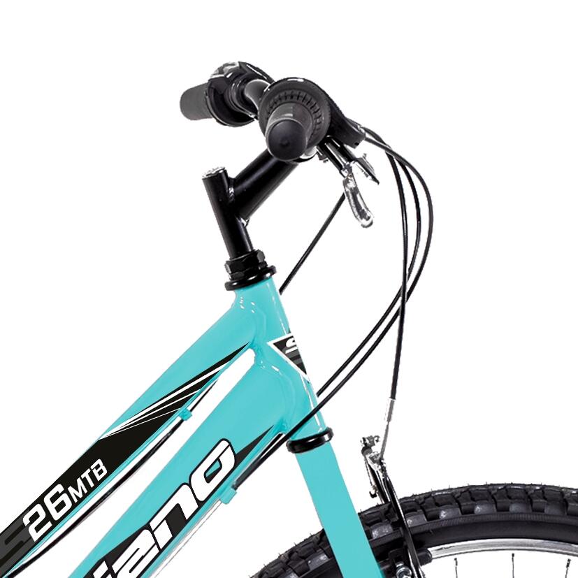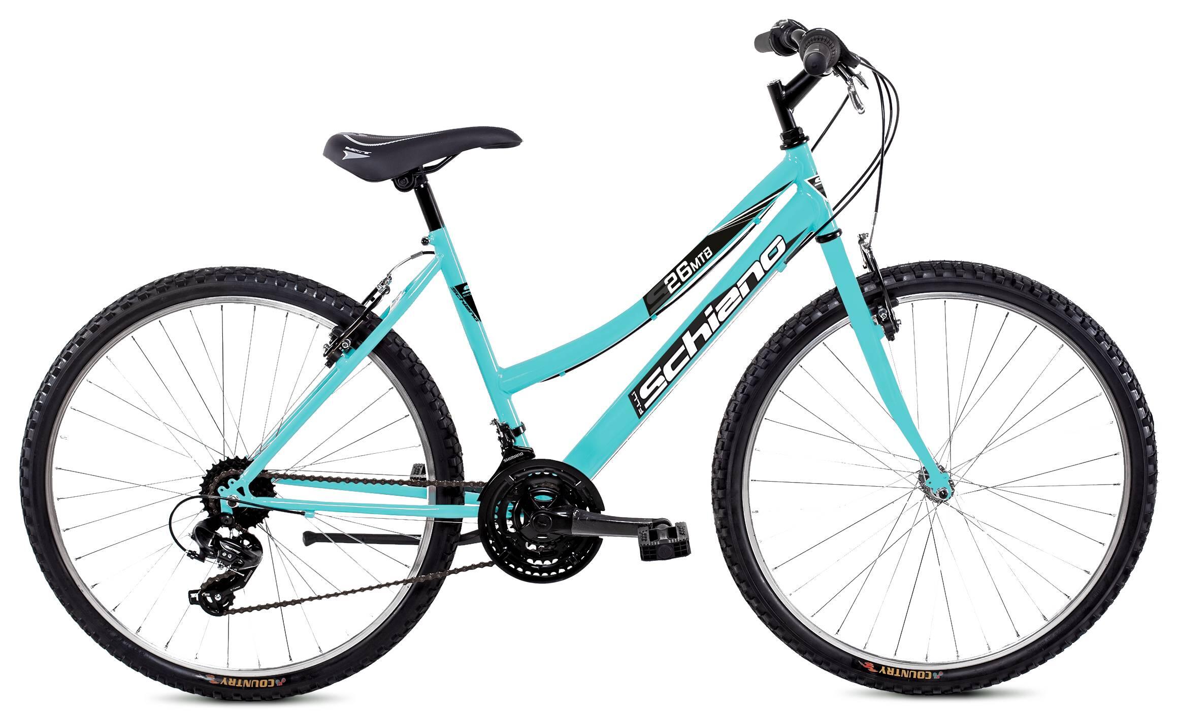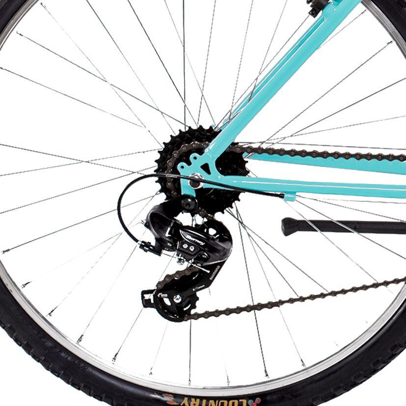 Steel mountain bike with V-brakes, Shimano TY 18-speed gears and aluminum rims