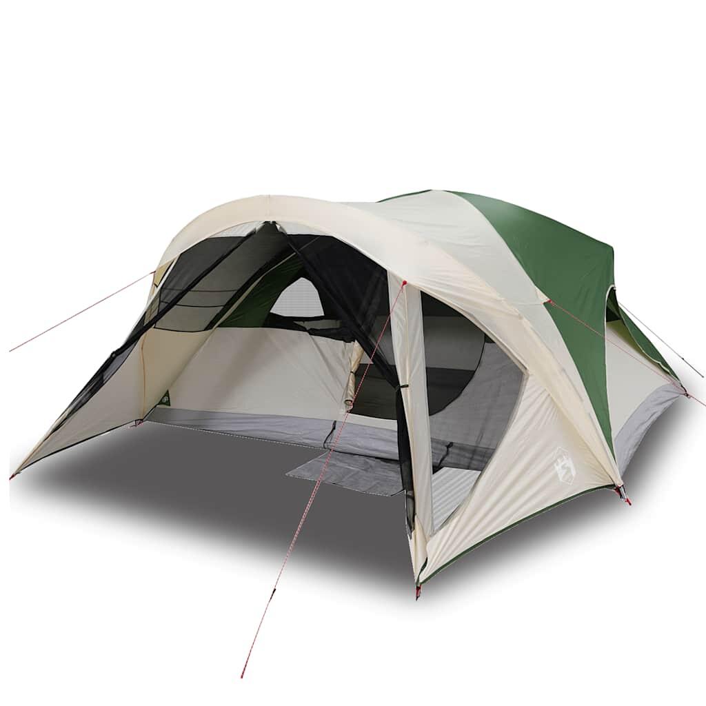 Spacious green vidaXL cabin tent for 6 people, waterproof and wind resistant, perfect for camping adventures.