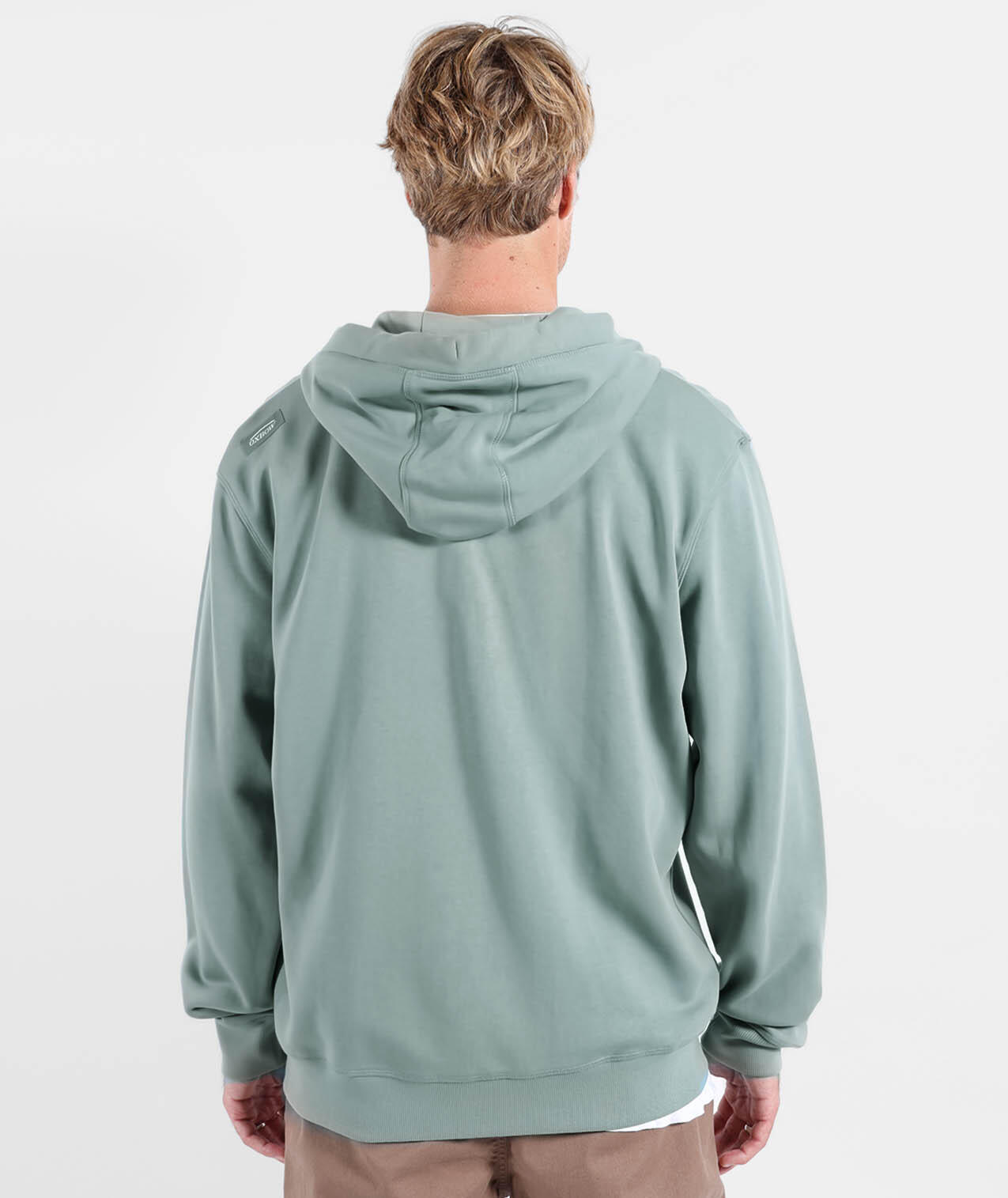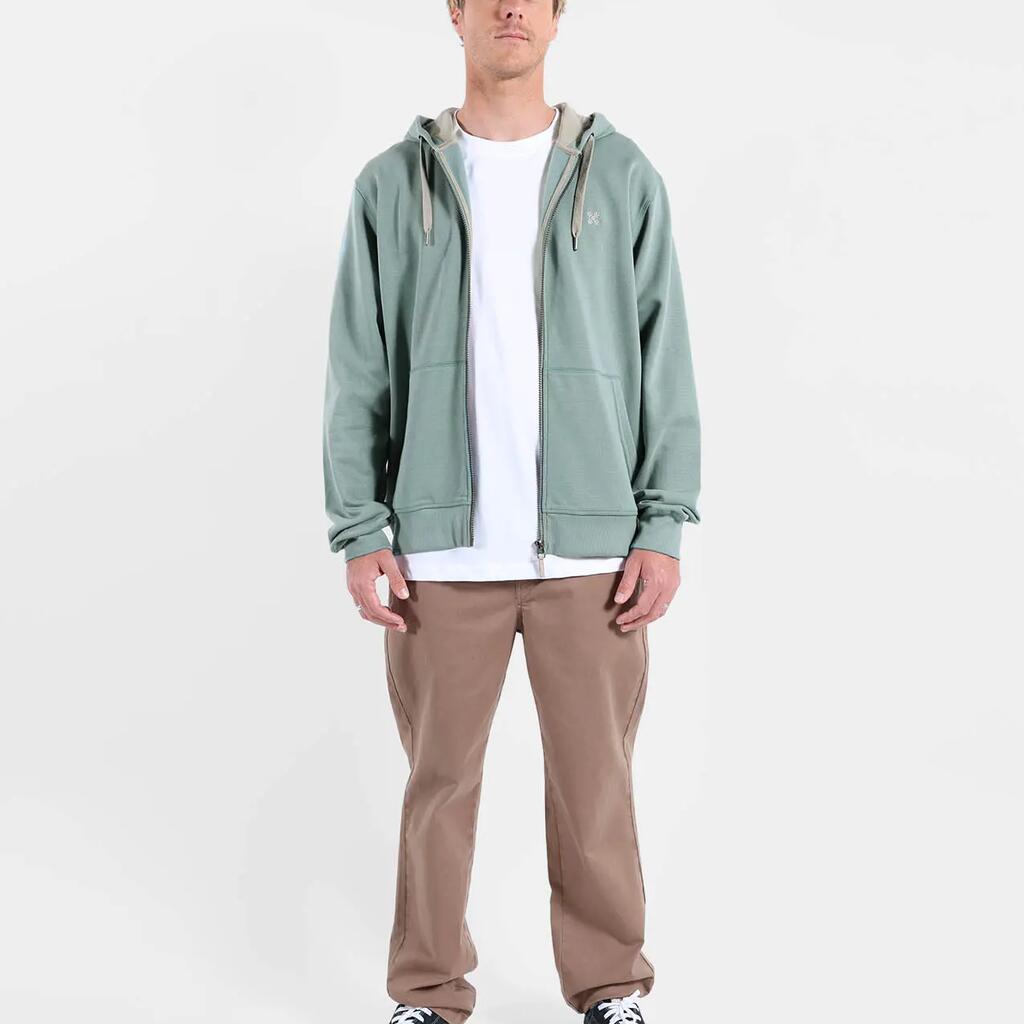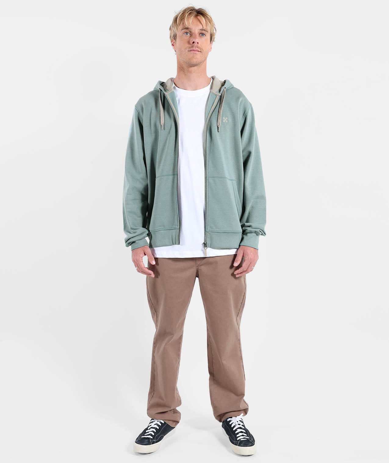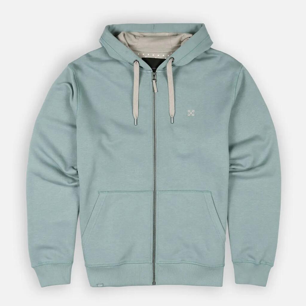 Fully zipped hooded sweatshirt, ribbed edges, contrast drawstring at hood, printed half-moon, contrast inner hood lining, kangaroo pocket, brushed fleece