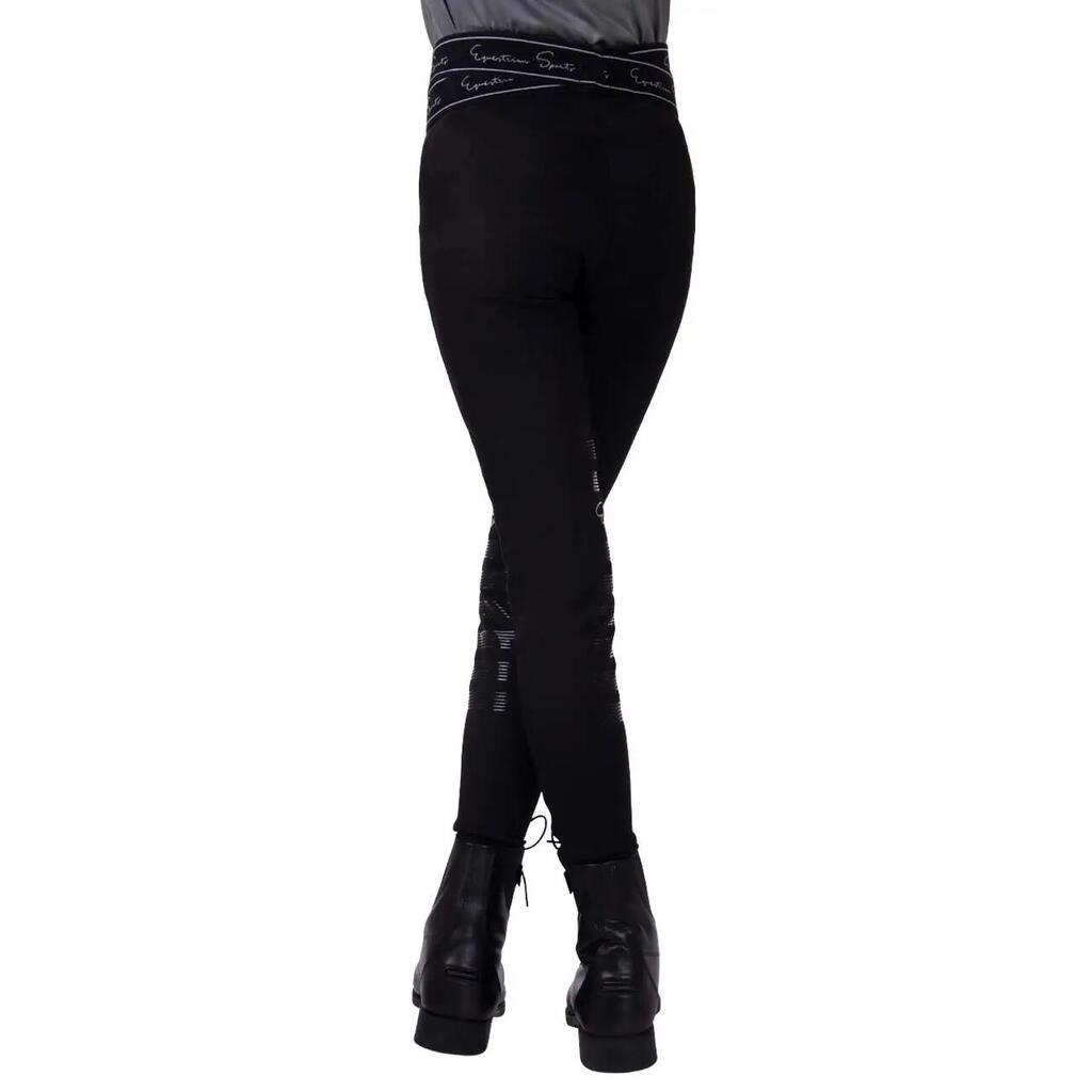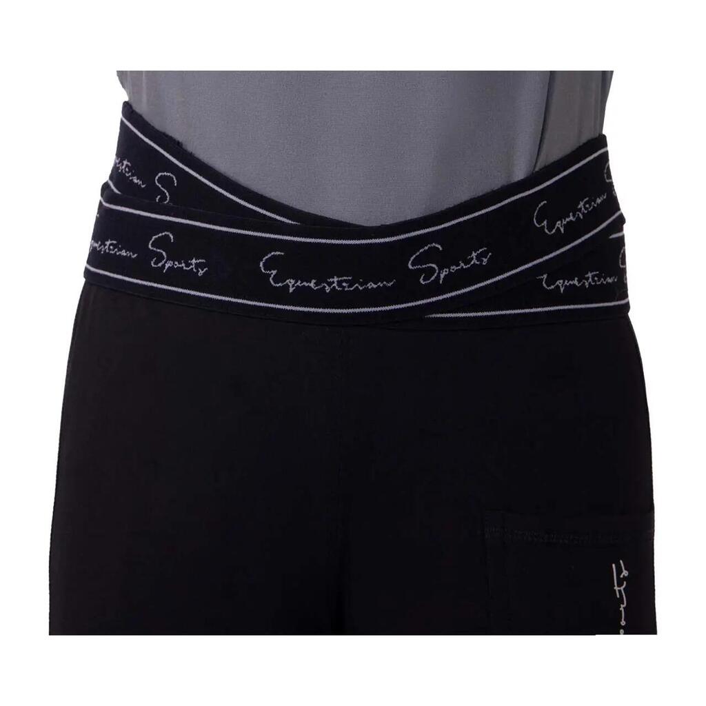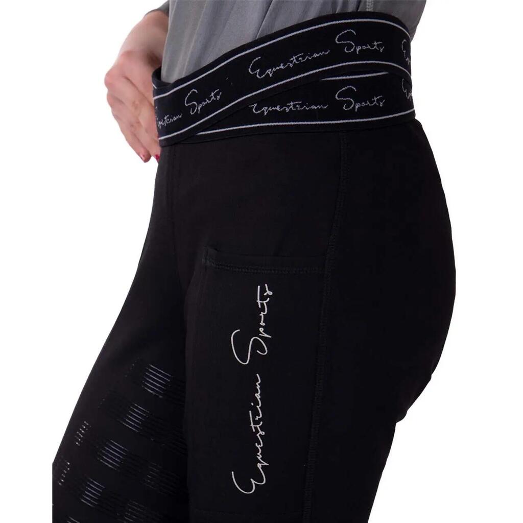 Sporty riding tights made from soft, comfortable fabric. The interior features a brushed lining. This will keep you warm on the coldest days. The Karley riding pants feature a practical phone pocket on the left thigh. The double elastic waistband and silicone seat give a sporty look.