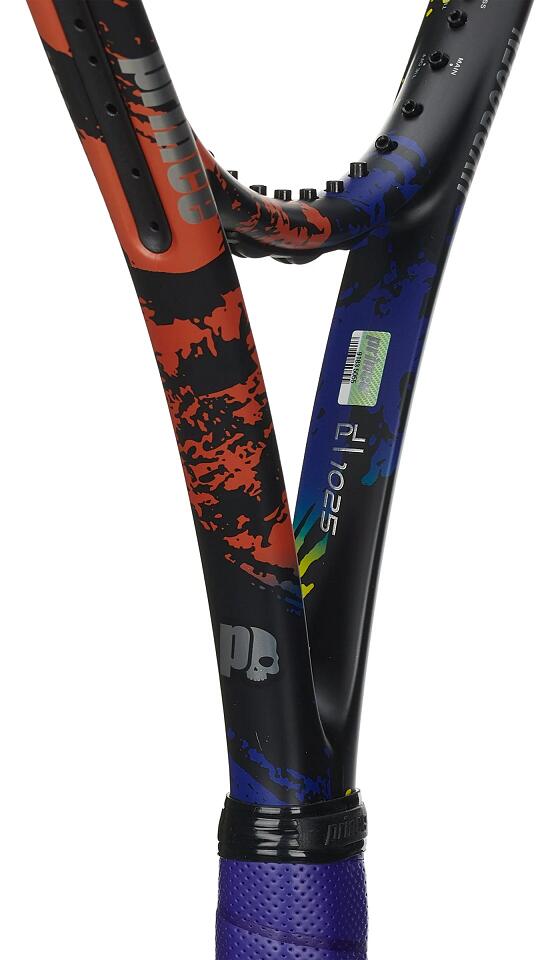 The "RANDOM TENNIS RACKET 7T53D" racket is a Limited Edition, born from the collaboration between Prince and Hydrogen who together have created a Co-branding project called "Prince by Hydrogen".