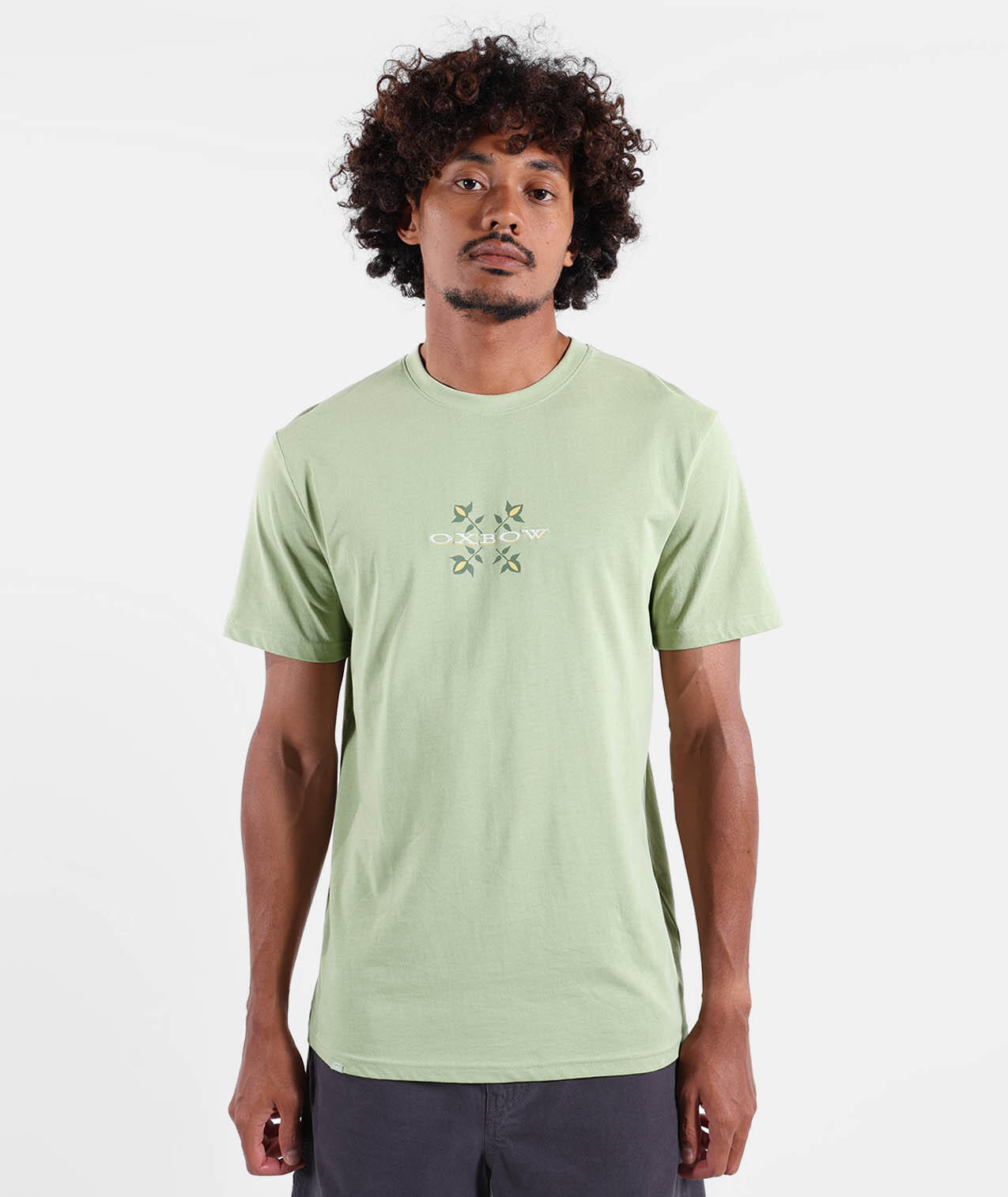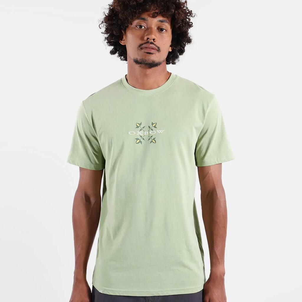 Crew neck tee, printed graphic on front, combed cotton and recycled polyester jersey