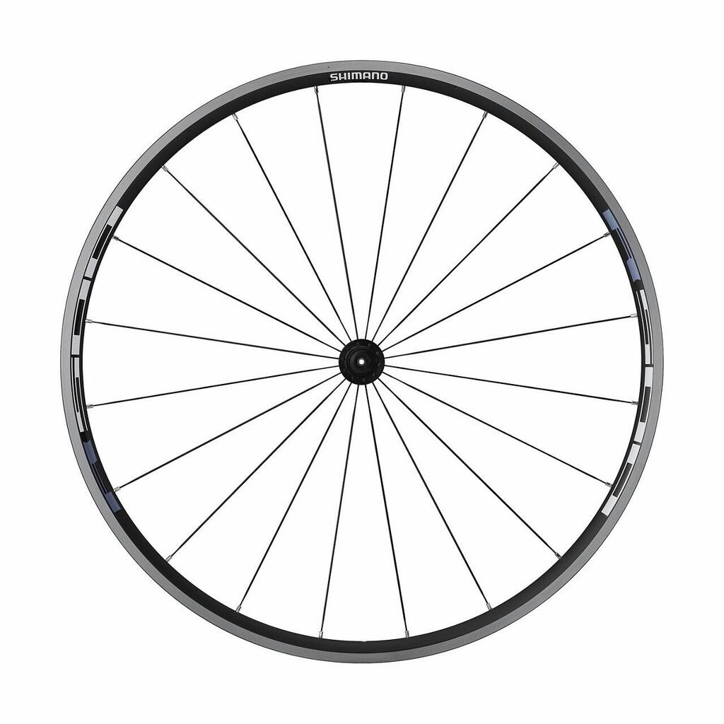 Ultimate performance with Rim Brake Wheels Shimano WH-R501 - 20 aerodynamic spokes for a smooth rapide ride!" Note: "roue frein sur jante" refers to rim brake wheels.