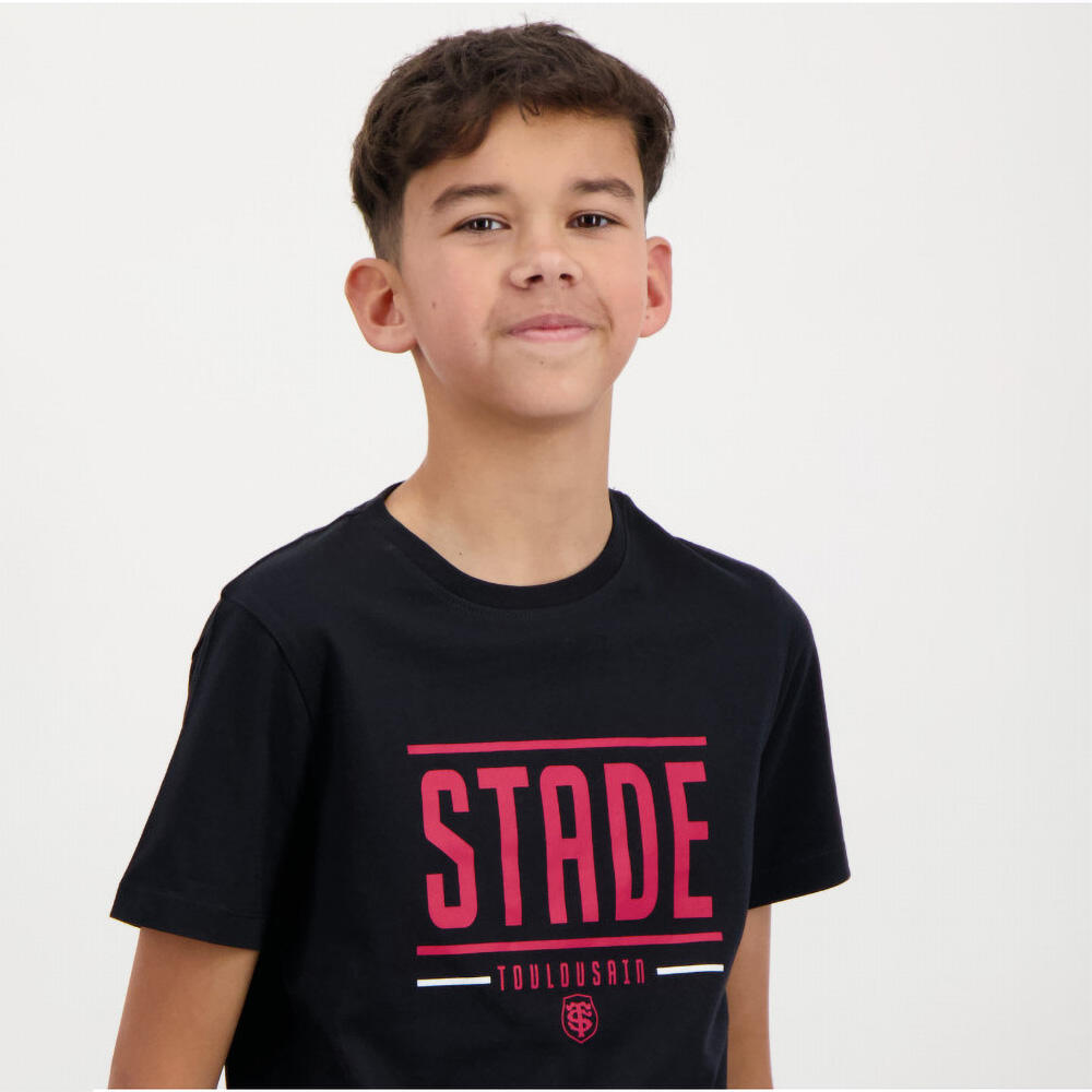 Official Stade Toulousain children's T-shirt combining comfort and urban style. Soft fabric and a modern cut make it an essential wardrobe staple for young supporters every day.
