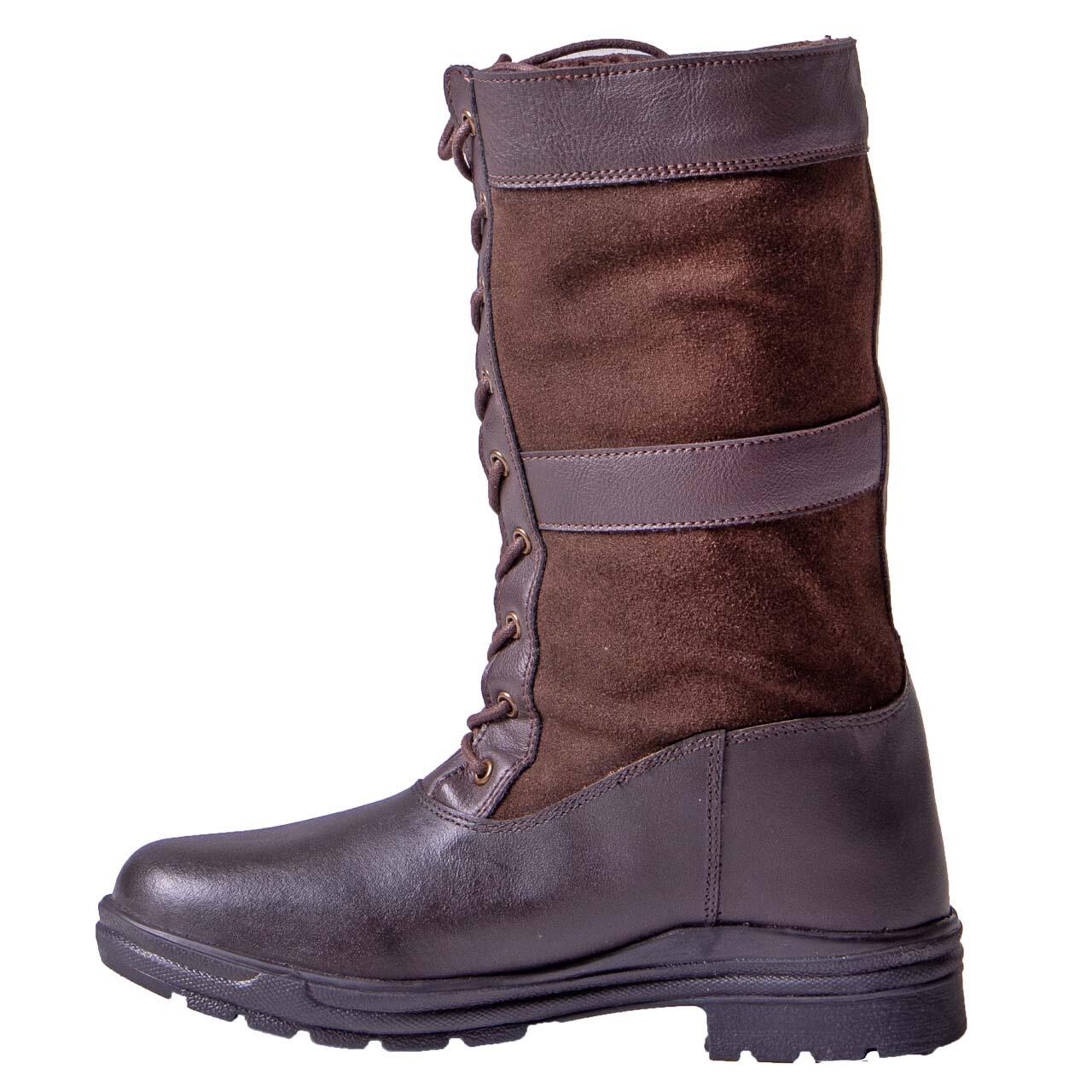 Waterproof outdoor riding boots in robust leather with front laces for secure grip and casual look. Warm and hard-wearing, perfect for the stable.