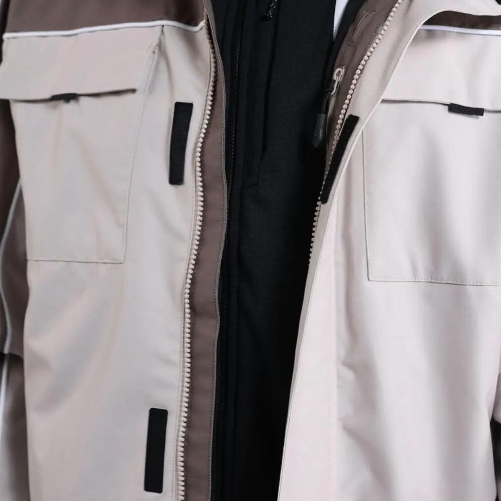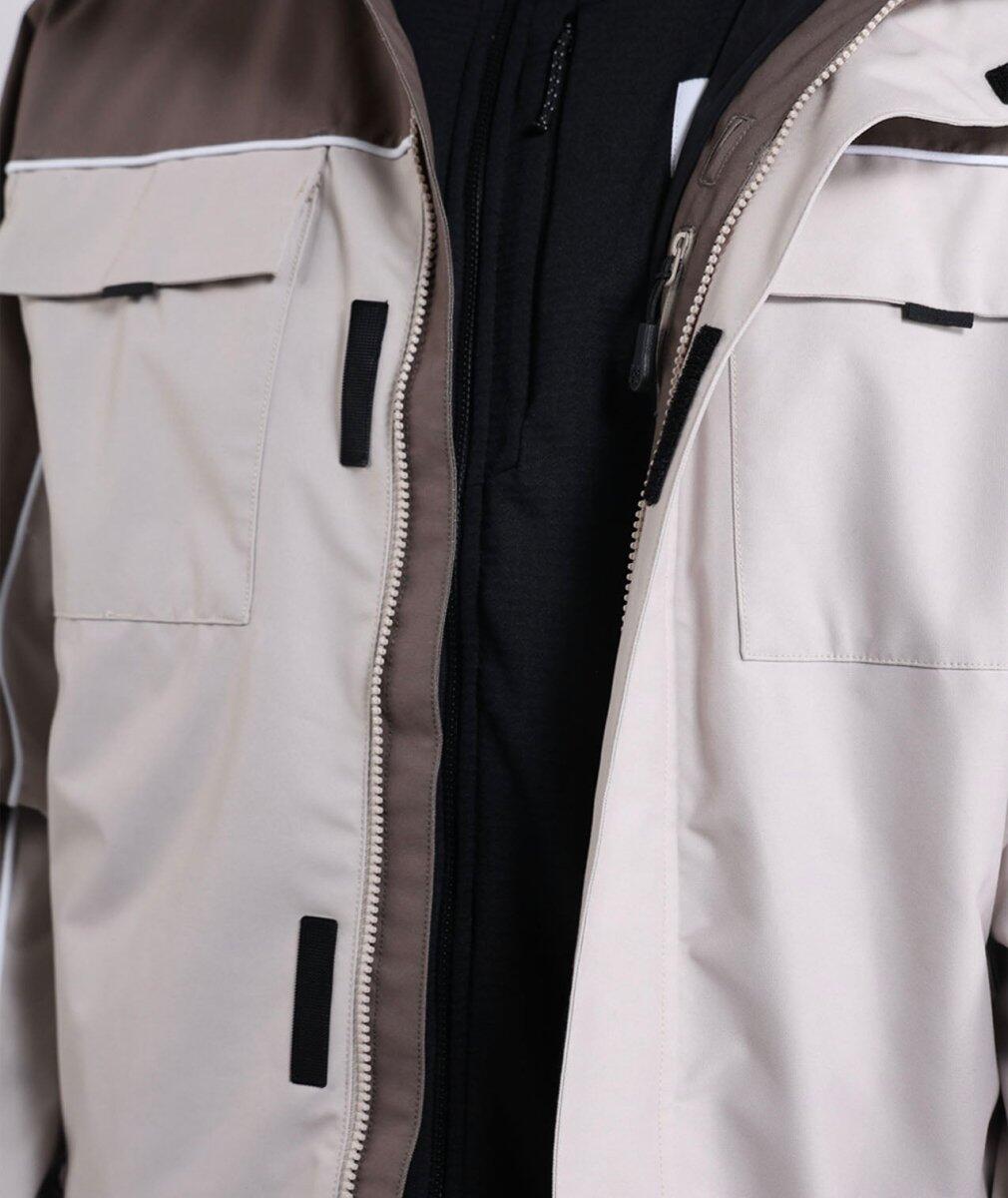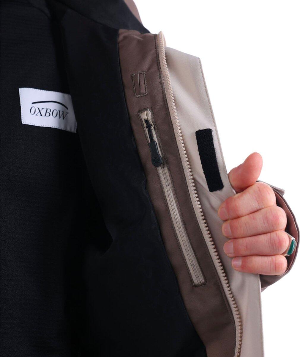 Technical jacket with a breathable and waterproof 15K/15K membrane, made from recycled polyester, offering comfort and performance.