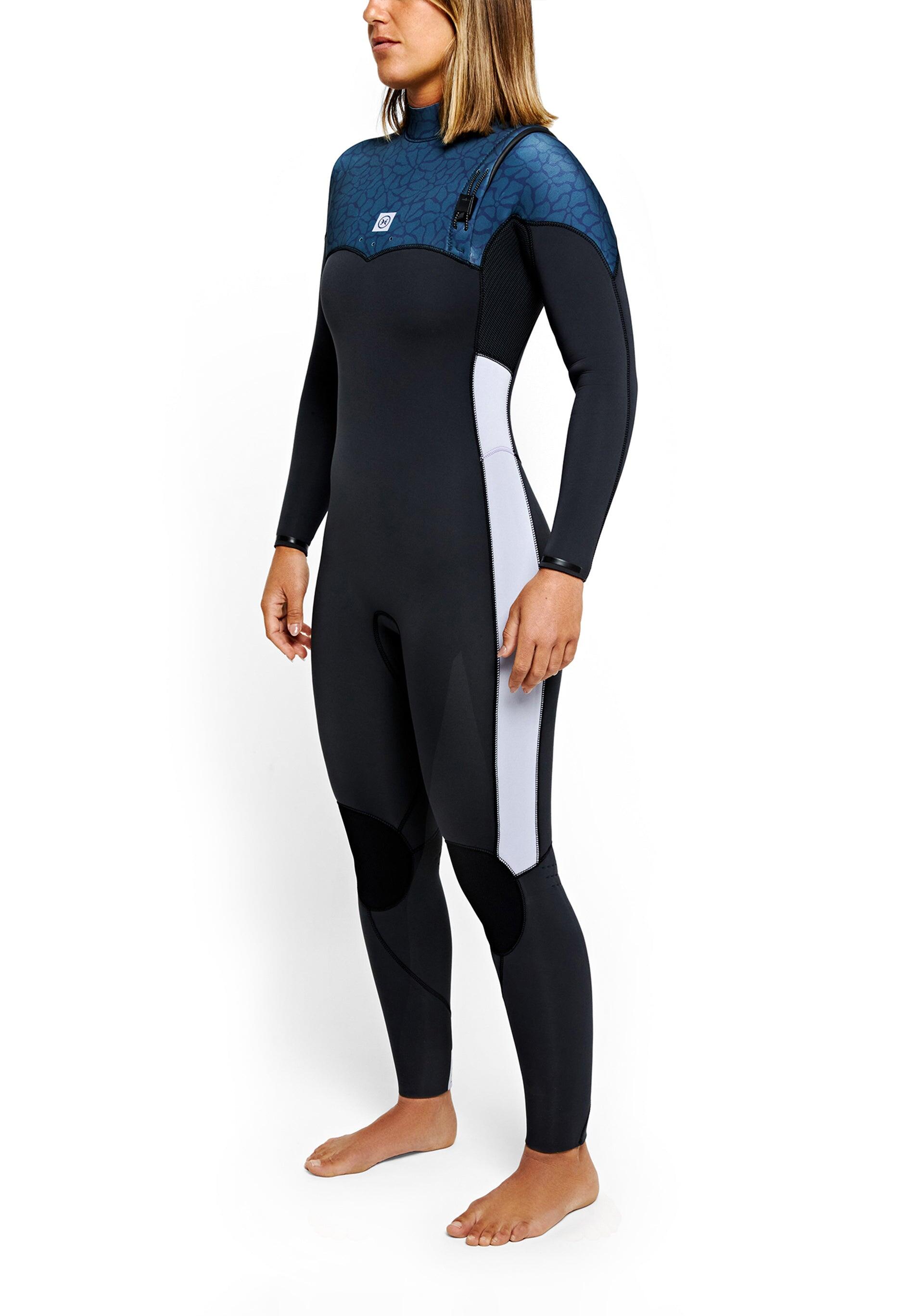 Wetsuit 4/3 Zipperless Limitless III for women, F-FLEX 3.0 lining, maximum mobility and ergonomic design in Black/Print. Ideal for 10–14°C.