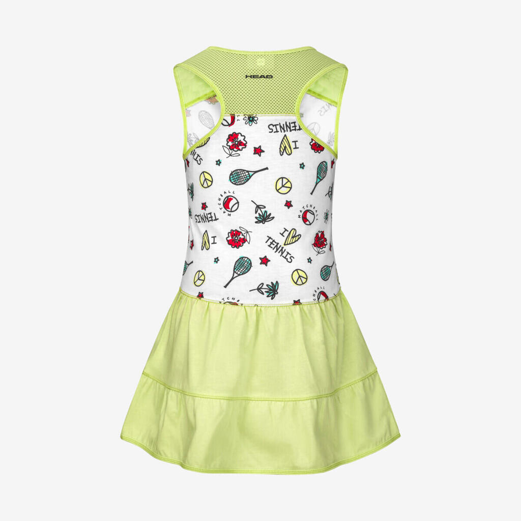 With its playful print featuring tennis balls, racquets and flowers, the girls' TENNIS DRESS is perfect for fun-loving, younger kids who are new to the sport.