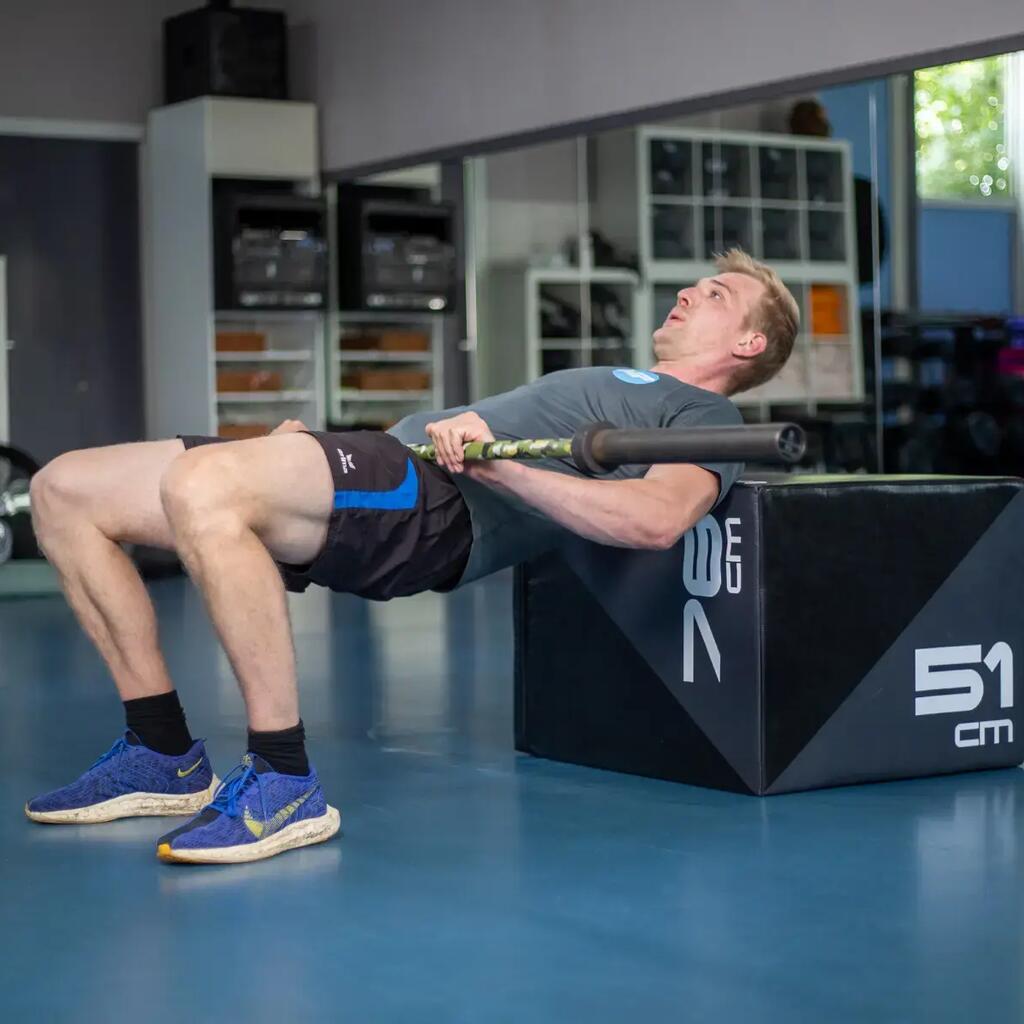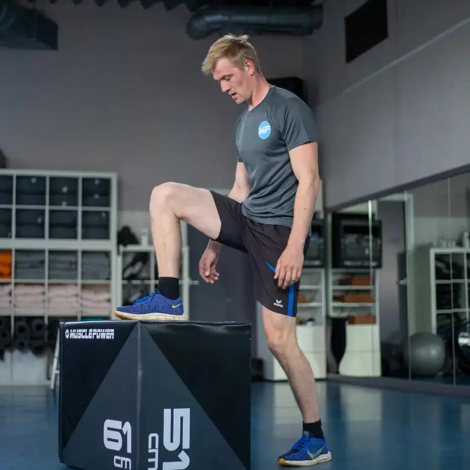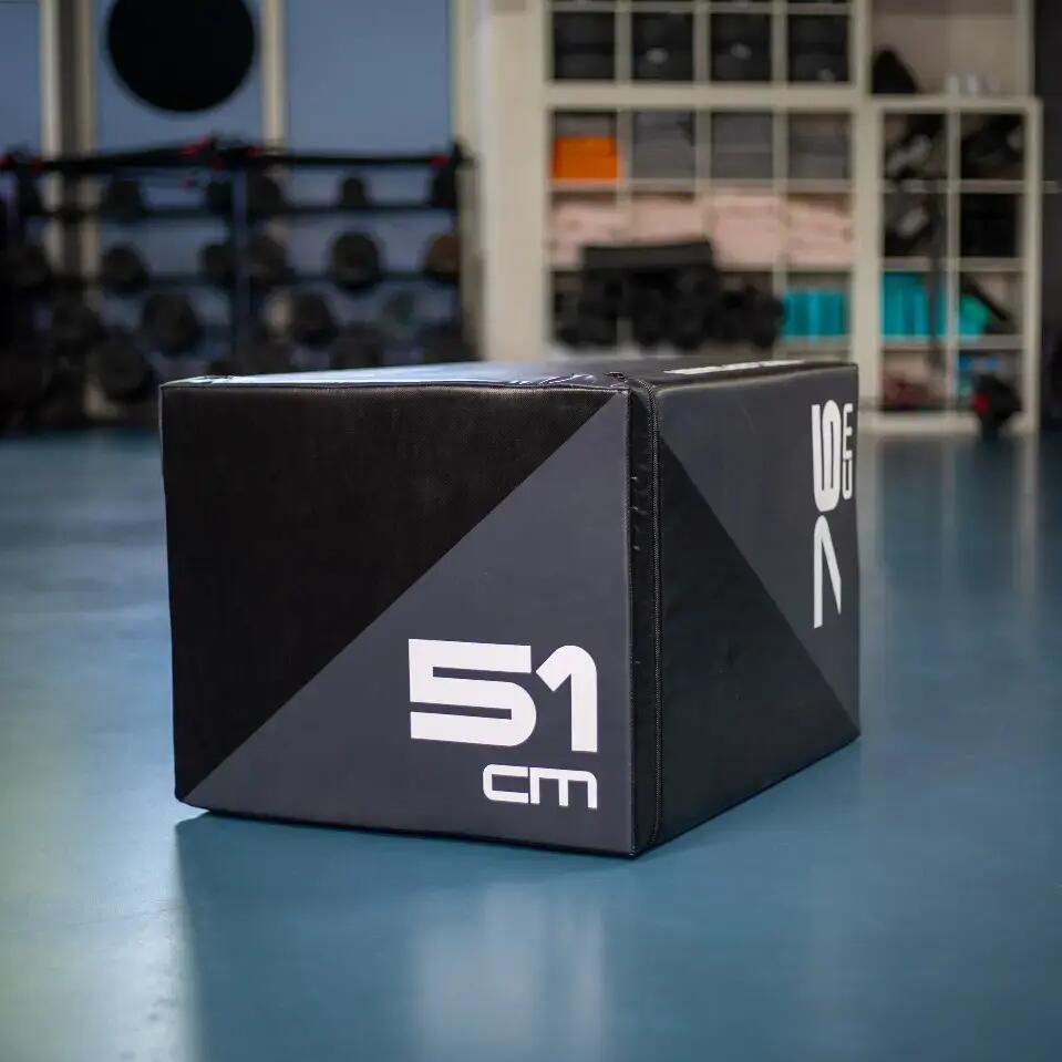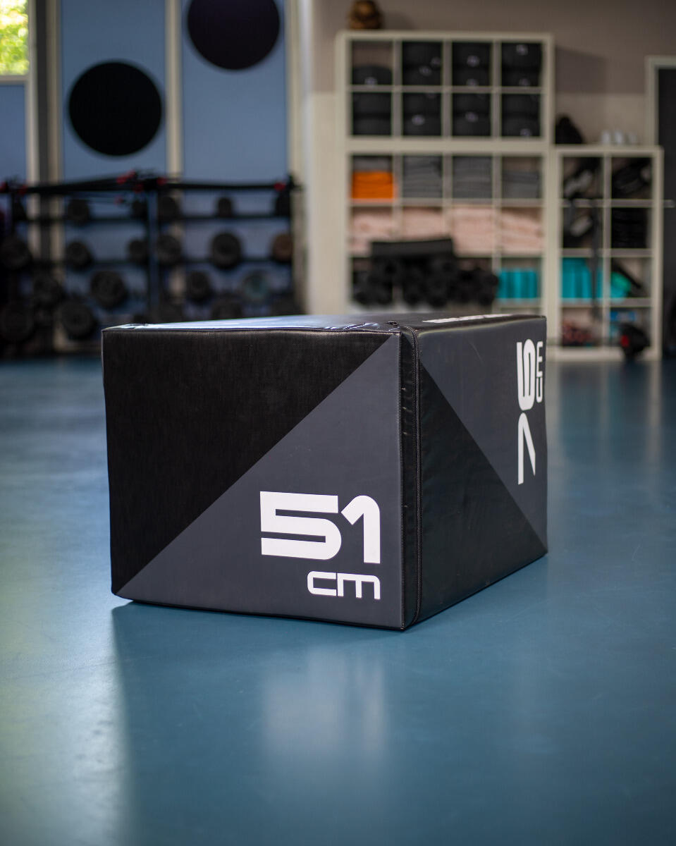 This tiltable Muscle Power Soft Plyo Box is equipped with a soft foam layer that protects your legs in case you jump next to the box once. Still, the box is sturdy and it can be easily flipped so you can quickly work with heights of 51 cm, 61 cm, or 76 cm.